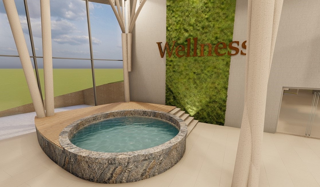 To reflect nature is our design, we have opted for many natural materials such as wood, natural stone, interior greenery, and a tree at the center of the building.