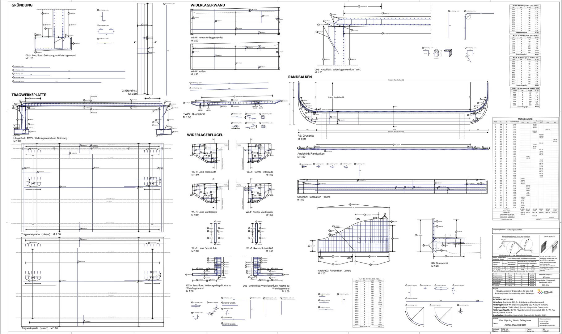 Im Zuge dieser Diplomarbeit werden verschiedene alternative Brückentragwerke erarbeitet, um eine Planung einer Radwegunterführung zu ermöglichen. Dabei muss Rücksicht auf das Gerinne und den Flussquerschnitt genommen werden.