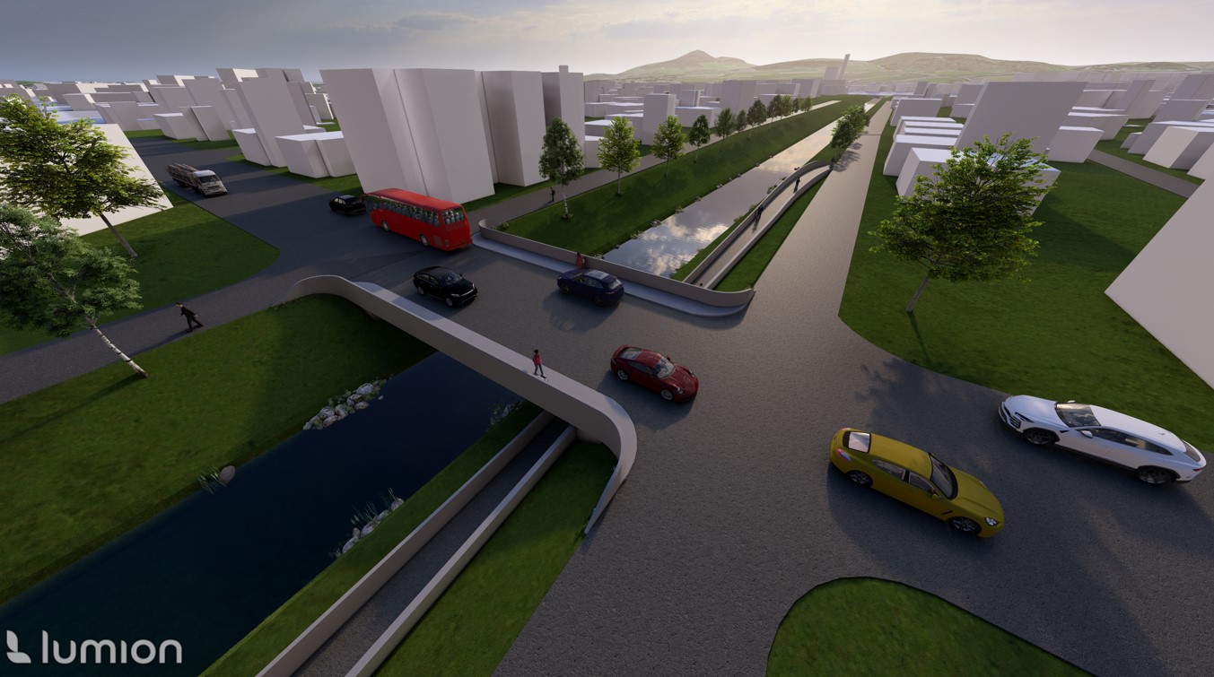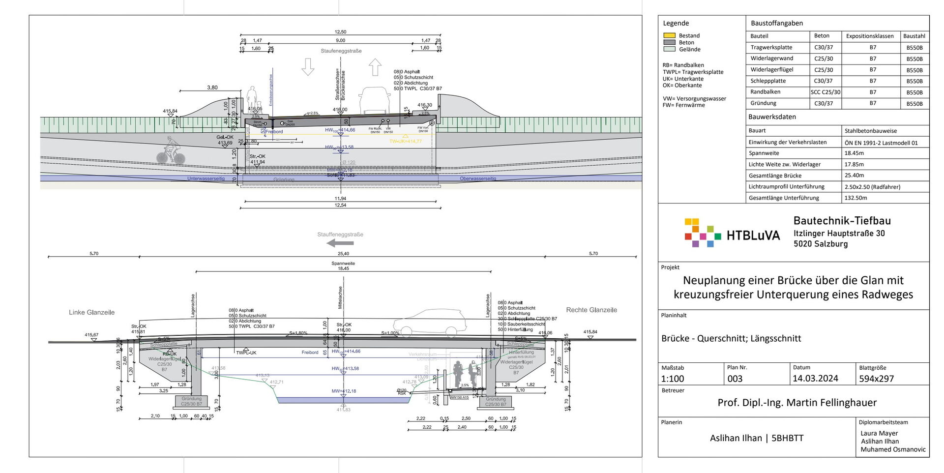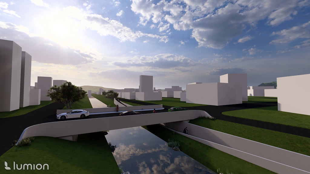 The existing two-lane reinforced concrete bridge along the Stauffeneggstraße in the Salzburg district of Lehen over the Glan and the cycle path along the Glan creates a very confusing intersection, which significantly affects the flow of traffic.