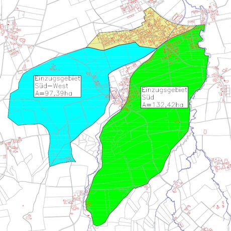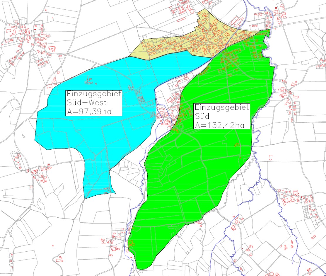 Durch die Diplomarbeitsgruppe wurden die örtlichen Beobachtungen planlich dargestellt, durch Begehungen erweitert und durch punktuelle Vermessungen verdichtet. Ergänzt wurden diese Basisdaten mit Bodenerkundungen durch Schürfschlitze zur Ermittlung der örtlichen Durchlässigkeiten.