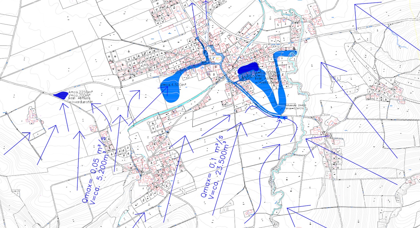 Aufbauend auf diesen Daten wurden mit dem Niederschlags-Abfluss-Modell ZEMOKOST rechnerische Simulationen des Hochwasserabflusses erstellt und mit den Hochwasserereignissen 2013 und 2016 korreliert.