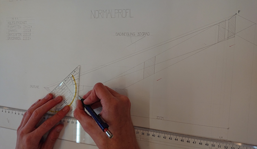 Themenpunkte: Dachausmittlung, Dachformen, Austragen der wahren Längen: