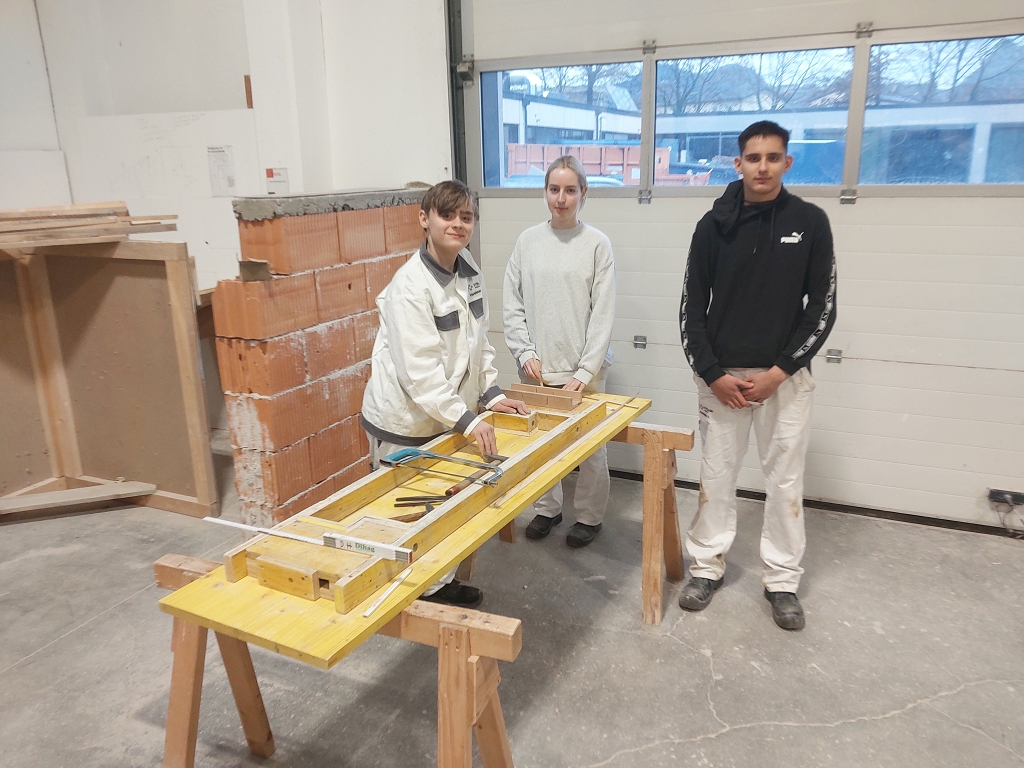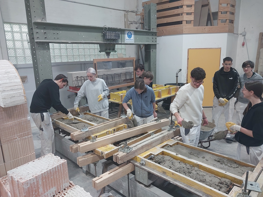 Die Schülerinnen und Schüler der 1 BHBT haben in einem praxisnahen Projekt ihr handwerkliches Können unter Beweis gestellt. Im Rahmen des Unterrichtsfaches Baupraxis und Produktionstechnik fertigten sie eine Schalung für ein Blumenbeet an und betonierten diese anschließend.