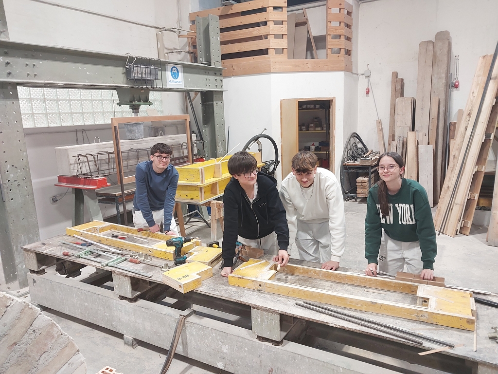 Zu Beginn stand die Planung: Die Schülerinnen und Schüler erarbeiteten Zeichnungen und berechneten die benötigten Materialien. Anschließend fertigten sie aus Holz eine präzise Schalung an, die als Form für das spätere Betonbeet diente.