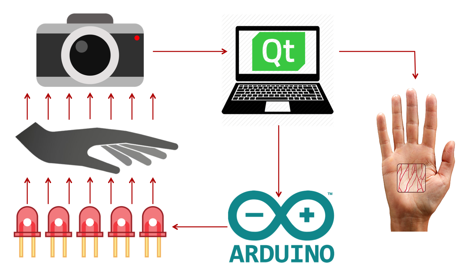 In Kooperation mit der Universität Salzburg wird an der Optimierung eines bereits entwickelten Prototypen gearbeitet. Dazu wird die Infrarot-Dioden-Matrix auf die Dimensionen 24x24 erweitert und dahingehend entwickelt, sodass jede Infrarot-Diode einzeln ansteuerbar ist. Des Weiteren wird durch das Deaktivieren jener Dioden, die sich nicht unter der Handfläche befinden und daher keine Venen beleuchten, die Eventualität ausgeschlossen, dass der Infrarot-Sensor überbelichtet wird. Darüberhinaus garantiert eine automatische Intensitätsregelung aller 576 Infrarot-Dioden die bestmöglichste Bildqualität.