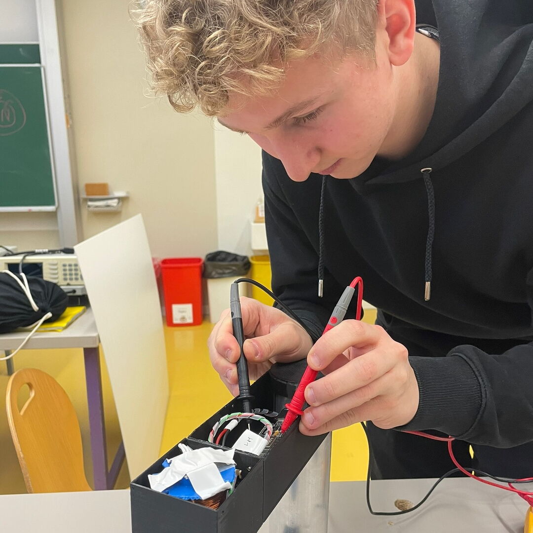 Bei der Implementierung kamen die Programmiersprachen C/C++ und JavaScript sowie HTML & CSS zum Einsatz. Die hochwertigen Gehäuseteile wurden im Haus mit Hilfe eines 3D-Druckers angefertigt. Eine schwere Edelstahlplatte sorgt für einen stabilen Stand. Das gesamte Gehäuse, die Hardware und die Software wurde von uns vollständig selbst entwickelt.