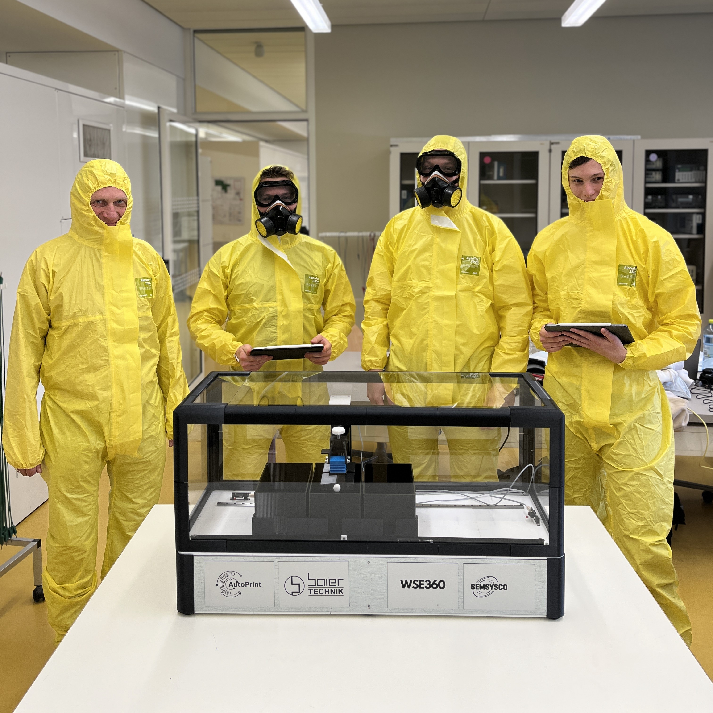 Um sicherzustellen, dass die Flüssigkeiten zum Ätzen auf der gewünschten Temperatur bleiben, wurde ein Heizelement implementiert.