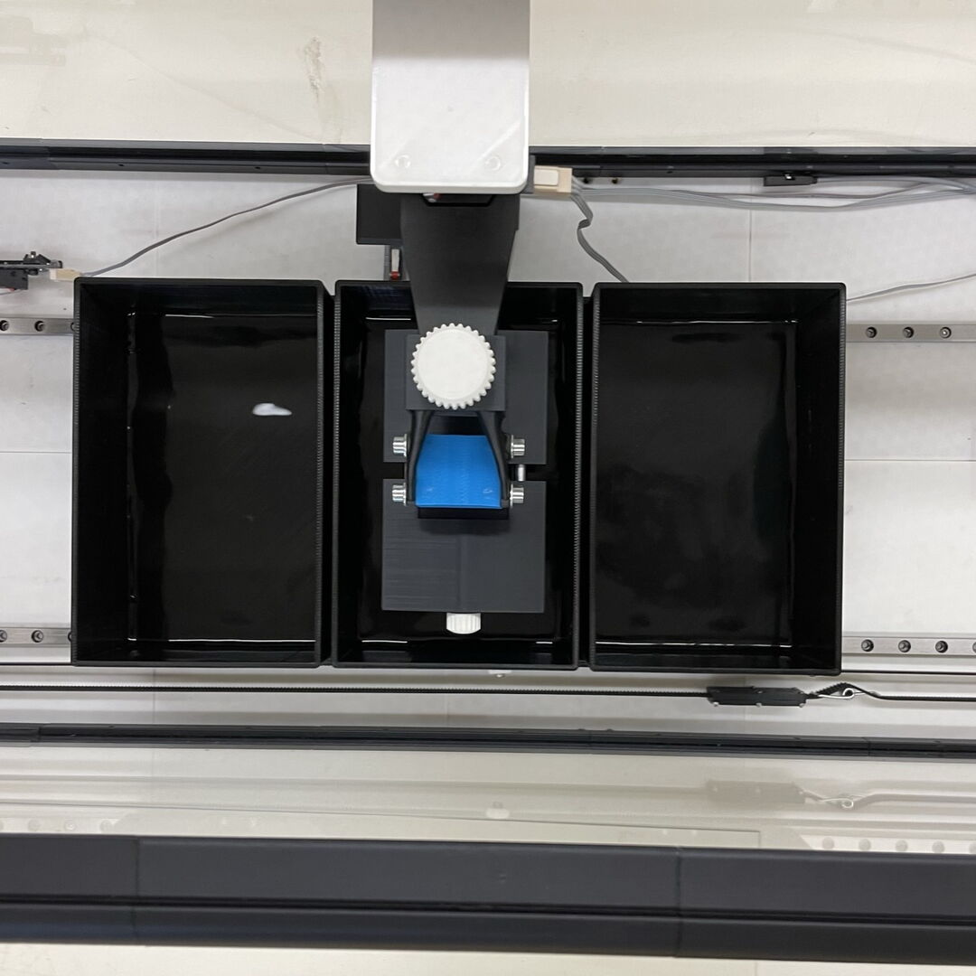 Schrittmotoren sorgen für die Bewegung der Ätzbecken und das Heben und Senken der Platinenrohlinge.