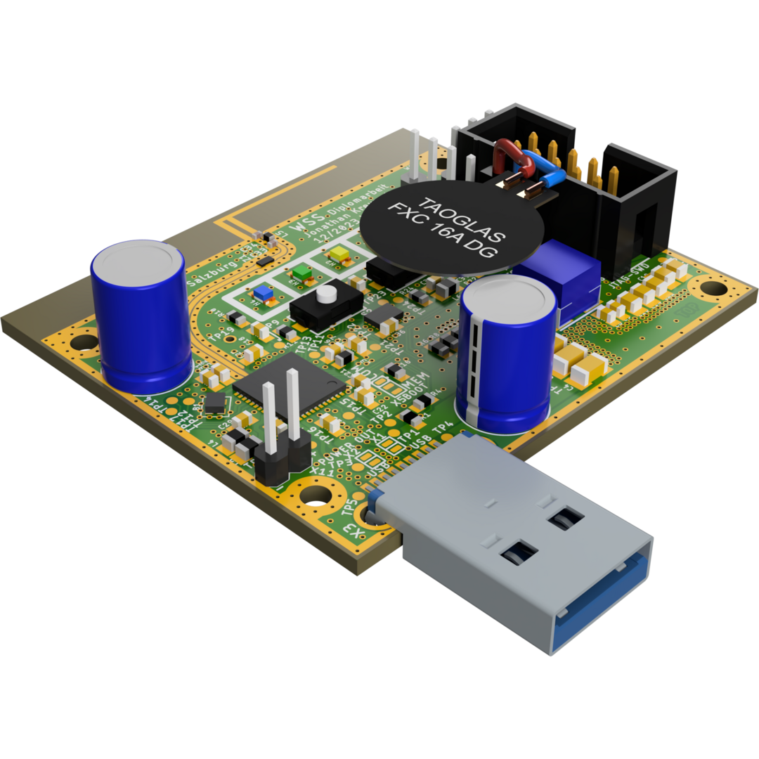 Das Smartphone wird einmalig an das Modul gehalten, um eine Verbindung über ein Magnetfeld per NFC herzustellen. Die fortlaufende Kommunikation erfolgt dann per Bluetooth Low Energy mithilfe einer Antenne auf der Oberseite der Platine. Ein Mikrocontroller steuert sämtliche Abläufe und kommuniziert über eine serielle Schnittstelle mit dem Servoverstärker.