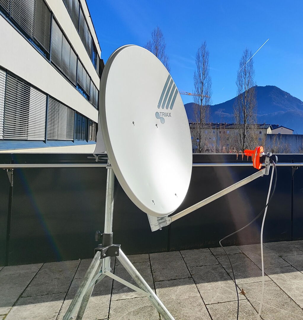 Um die Signale zu senden, wird eine Helix Antenne verwendet, die auf die nötige Frequenz abgestimmt ist. Durch die zusätzliche Verwendung von einem Parabolspiegel und einem Verstärker kann das Signal gesendet werden. Um Daten zu empfangen, wird eine Einspeiseweiche und ein LNB verwendet, dass dafür sorgt, dass Signale störungsfrei empfangen werden können. Als zentrales Element wird ein AdalmPluto verwendet, der für die Verarbeitung der jeweiligen Signale sorgt. Die Signale werden anschließend an einen geostationären Satelliten gesendet, der für die Notwendige Reichweite sorgt.
