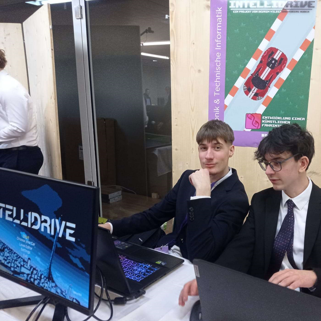 Am Ende unseres vierten Schuljahres an der HTBLuVA Salzburg, inspiriert durch den Erfolg unseres vorherigen HWE-Projekts, entschieden wir uns, erneut gemeinsam an einer herausfordernden und innovativen Diplomarbeit zu arbeiten. Verschiedene Ideen wurden diskutiert, doch unser Interesse an Künstlicher Intelligenz stand von Anfang an fest. Insbesondere bei Tobias Huber, der bereits Erfahrung in der Entwicklung von KI-Algorithmen gesammelt hatte, brachte wertvolle Expertise ein. Schließlich fiel unsere Wahl auf IntelliDrive – ein Projekt, das eine Künstliche Intelligenz mit einem genetischen Algorithmus kombiniert, um in einer Fahr-Simulationsumgebung das autonome Fahren zu erlernen. Mit großem Enthusiasmus und Zielstrebigkeit widmeten wir uns diesem Vor- haben, nicht nur um ein zukunftsweisendes System zu entwickeln, sondern auch um eine solide Grundlage für nachfolgende Projekte wie ”Crazy Car” zu schaffen.