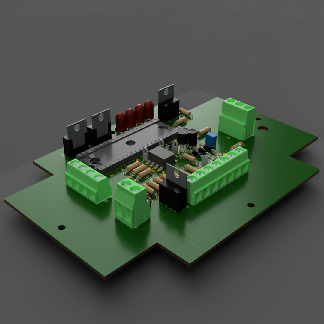 Durch schnelles, gezieltes Ein- und Ausschalten der Netzspannung mithilfe von Relais kann die Leistung und somit Temperatur des Heizkörpers geregelt werden. Über ein Programm am Computer können der Betriebsmodus sowie die gewünschte Leistung in Prozent eingestellt werden. Diese Daten werden von einem Mikrocontroller erfasst, der dann die passenden Regelsignale für das Schalten der Relais generiert. Somit stellt AlphaController eine kompakte Lösung für eine optimale Leistungssteuerung dar.