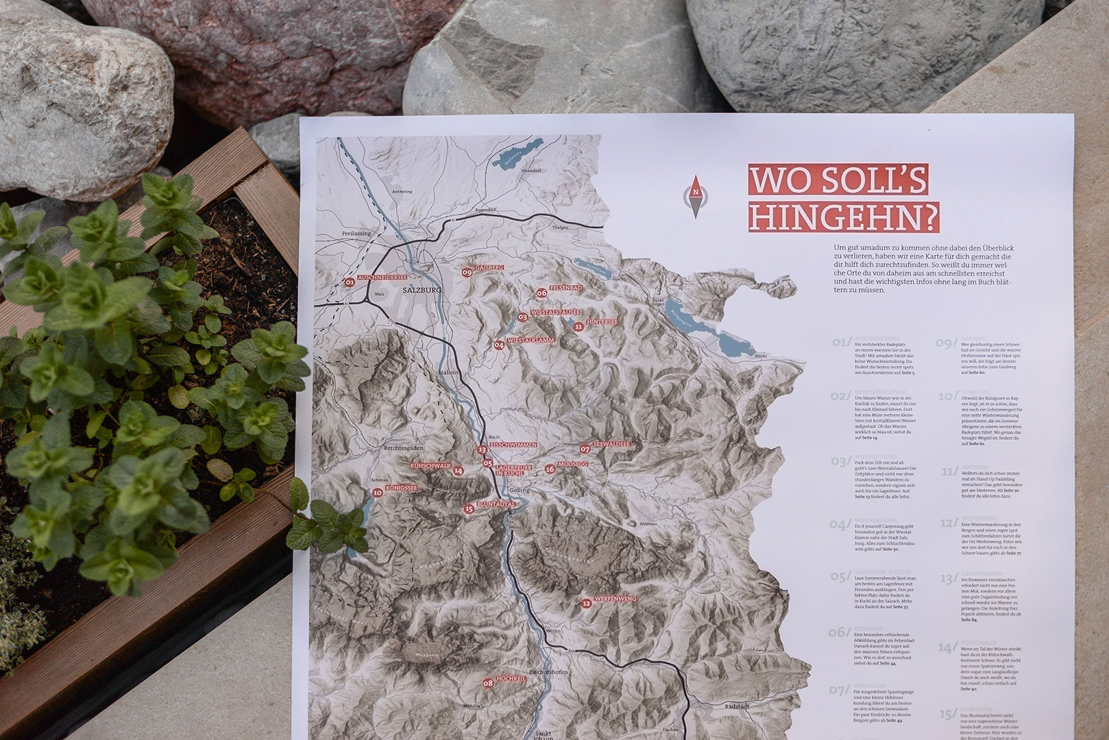 Insbesondere die Tatsache, dass wir, ausgestattet mit Kamera und Skizzenblock, Ausflüge unternommen und die im Buch vorgestellten Orte erkundet haben, anstatt einfach nur vorm Laptop zu sitzen, hat uns motiviert und inspiriert. Alle Erlebnisse und Erfahrungen haben wir in unserem umadum Buch zusammengefasst und zusätzlich auf einer übersichtlichen, optisch ansprechenden Karte des Großraums Salzburg dargelegt. Um das Buch zu promoten haben wir durch Bild- und Videomaterial in sozialen Netzwerken darauf aufmerksam gemacht.
