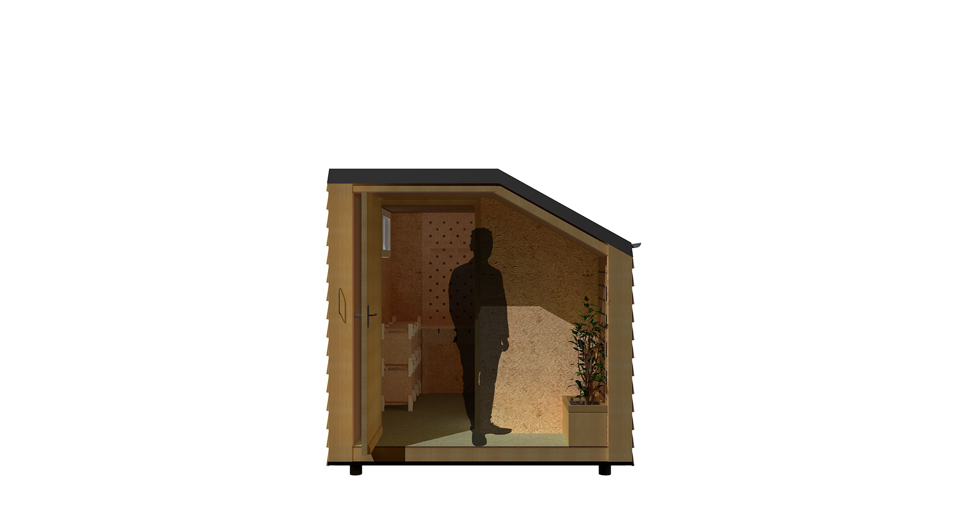 Gabriela Pranjic war für die Konstruktion der Außenhülle zuständig. Diese Aufgabe beinhaltete die Planung des Wandaufbaues, der Fassade und die Planung weiterer bautechnischen Komponenten, die für eine funktionierende Konstruktion wichtig waren. Weiteres Aufgabengebiet war die Entwicklung einer optionalen Begründung, welche am Modul angebracht werden kann. Laura Mudra arbeitete an der Kon-zeptionierung des Innenbereichs. Für diesen designte die funktionelle und platzsparende Möbel, die ausreichend Stauram beherbergen. Hierfür entwickelte sie neben dem Farbkonzept auch ein Muster für einen Stoff, welcher im Schlafbereich zum Einsatz kommt und beschäftigte sich mit weiterer Ausstattung die für den Alltag gebraucht wurde.