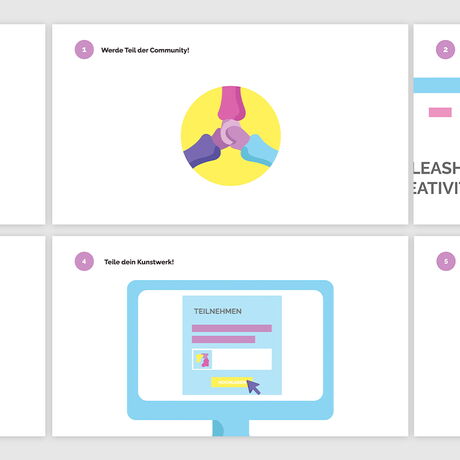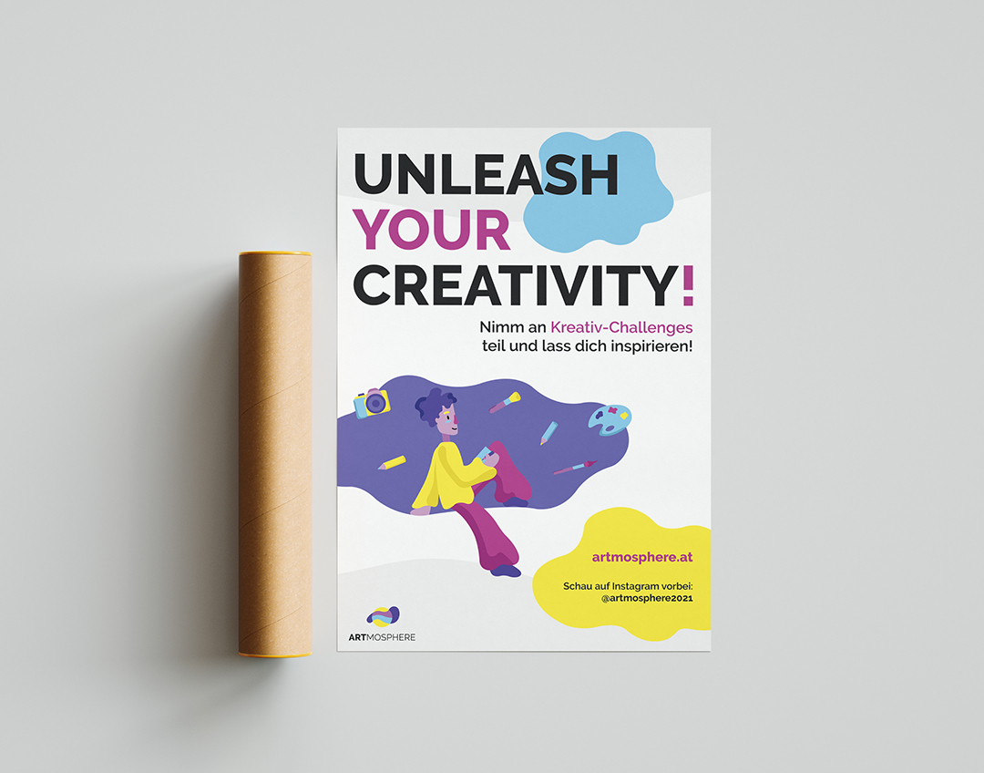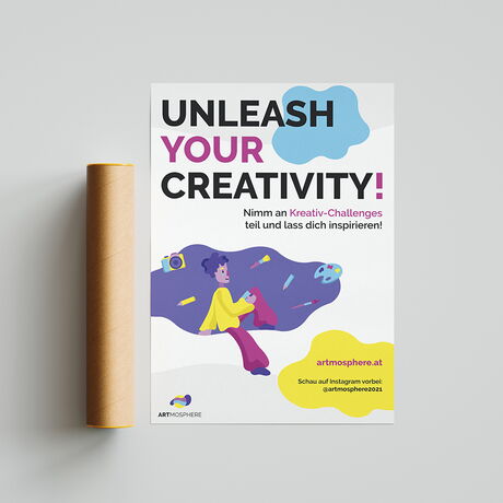 Auch wenn Kreativität eine stabilisierende Wirkung auf die menschliche Psyche hat und dabei hilft, tägliche Situationen aus einem anderen Blickwinkel zu betrachten, verliert diese im Leben von Jugendlichen immer mehr an Priorität. Vor allem Schülerinnen und Schüler sind das Arbeiten nach strikten und genauen Vorgaben gewohnt und haben selten die Möglichkeit, sich ganz nach ihren eigenen Vorstellungen mit kreativen Prozessen auseinanderzusetzen. Unser Team, bestehend aus Magdalena Ackerl, Nathalie Gamper und Verena Zmollnig, macht es sich mit diesem Projekt zum Ziel, junge Menschen dabei zu unterstützen ihre Kreativität auszuleben und sie darin zu fördern, sich mehr Zeit für künstlerisches Arbeiten zu nehmen. Wir wollen Anreiz, Motivation, Inspiration und eine Plattform für freie Kreativität bieten. Im Zuge des Diplomprojekts entstand eine frei zugängliche Plattform im Web, welche durch monatliche Challenges zum kreativen Arbeiten motiviert, einen Platz zum Veröffentlichen bietet und auch Inspiration durch andere ermöglicht. Für einen geeigneten visuellen Auftritt wurde ein umfangreiches Corporate Design entwickelt. Des Weiteren wurden, um auf das Projekt aufmerksam zu machen, Werbemittel in Form von Print, Video und Social Media konzipiert und erstellt. Das Resultat des Projekts soll eine Plattform sein, welche Schülerinnen und Schüler durch die Teilnahme an den Challenges zu mehr Kreativität motiviert, ihnen die Möglichkeit gibt, ihr Talent zu zeigen und sich zusätzlich gegenseitig durch einen wertschätzenden Umgang zu inspirieren.
