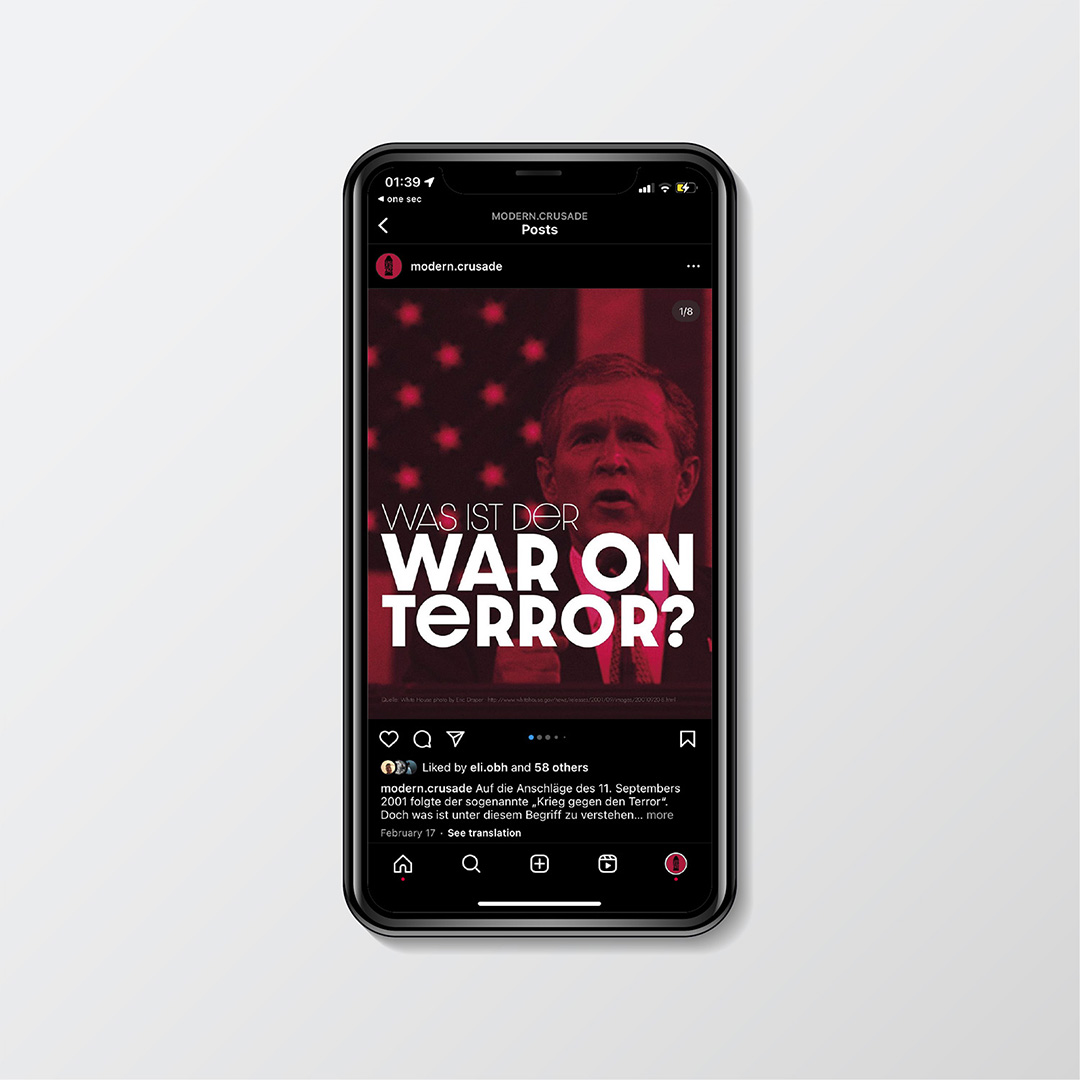Modern Crusade ist eine multimediale Awareness-Kampagne über den „Krieg gegen den Terror“. Bis heute hat dieses Thema Auswirkungen auf unsere Welt und auch wir hier in Europa spüren die Folgen. Man denke an die Flüchtlingskrise 2015, die Terroranschläge in Frankreich 2015 oder auch an Alltäglicheres, wie strengere Kontrollen an Flughäfen und öffentlichen Plätzen. Vor allem junge Menschen sind sich oft nicht bewusst, was genau der „Krieg gegen den Terror“ ist und haben teilweise noch nie von dem Thema gehört.
