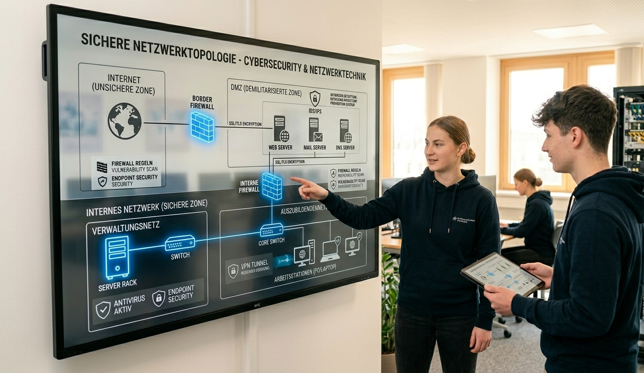 Baue die digitale Infrastruktur von morgen und verteidige sie! Verknüpfe Systeme wie ein Profi, sichere Daten mit High-End-Backups und werde durch Ethical Hacking zum ultimativen Cybersecurity-Experten, der Systeme hackt, um sie für echte Angreifer unüberwindbar zu machen. - Informationstechnische Projekte:
