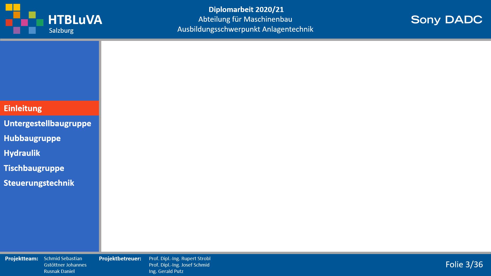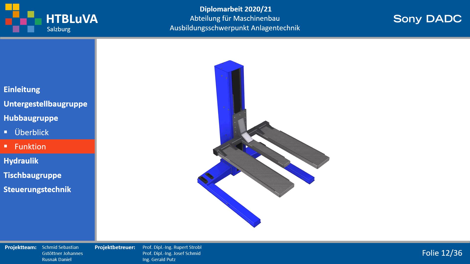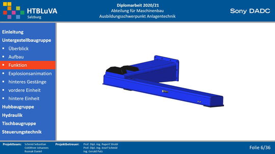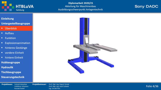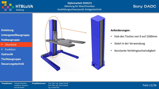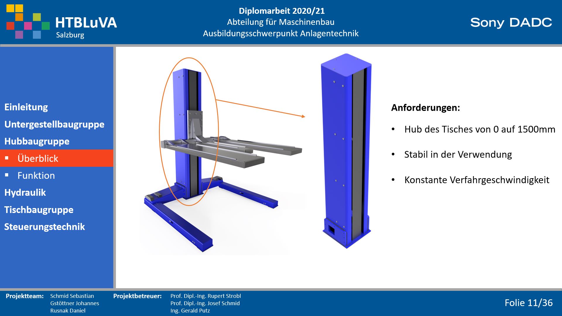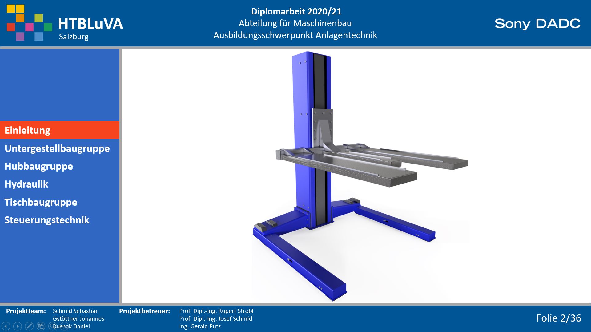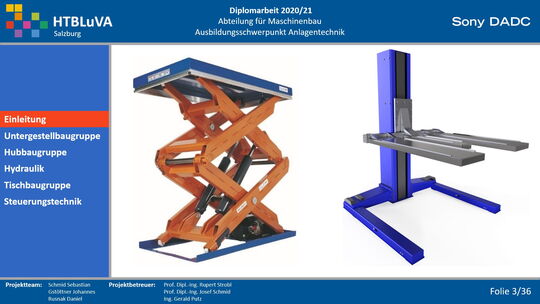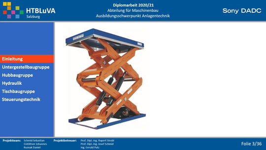 In der Produktion der Firma Sony DADC werden täglich Paletten diverser Größen manipuliert. Um diese Arbeit möglichst ergonomisch zu gestalten, soll ein mobiler Hubtisch mit automatischer Höhenverstellung entwickelt werden.