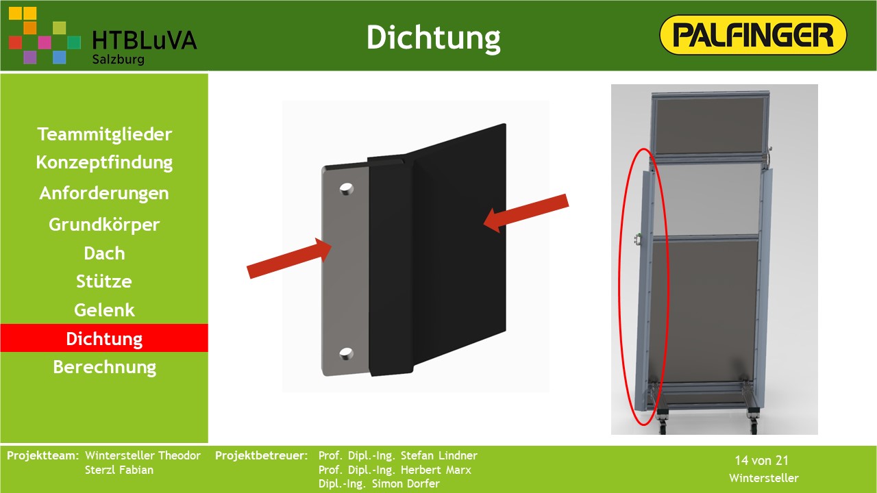 Das Ergebnis des Projekts ist ein Creo Modell einer voll funktionsfähigen und fertigbaren Sicherheitstrennwand, die den Arbeitern der Testabteilung der Palfinger Europe GmbH Schutz am Arbeitsplatz bietet.