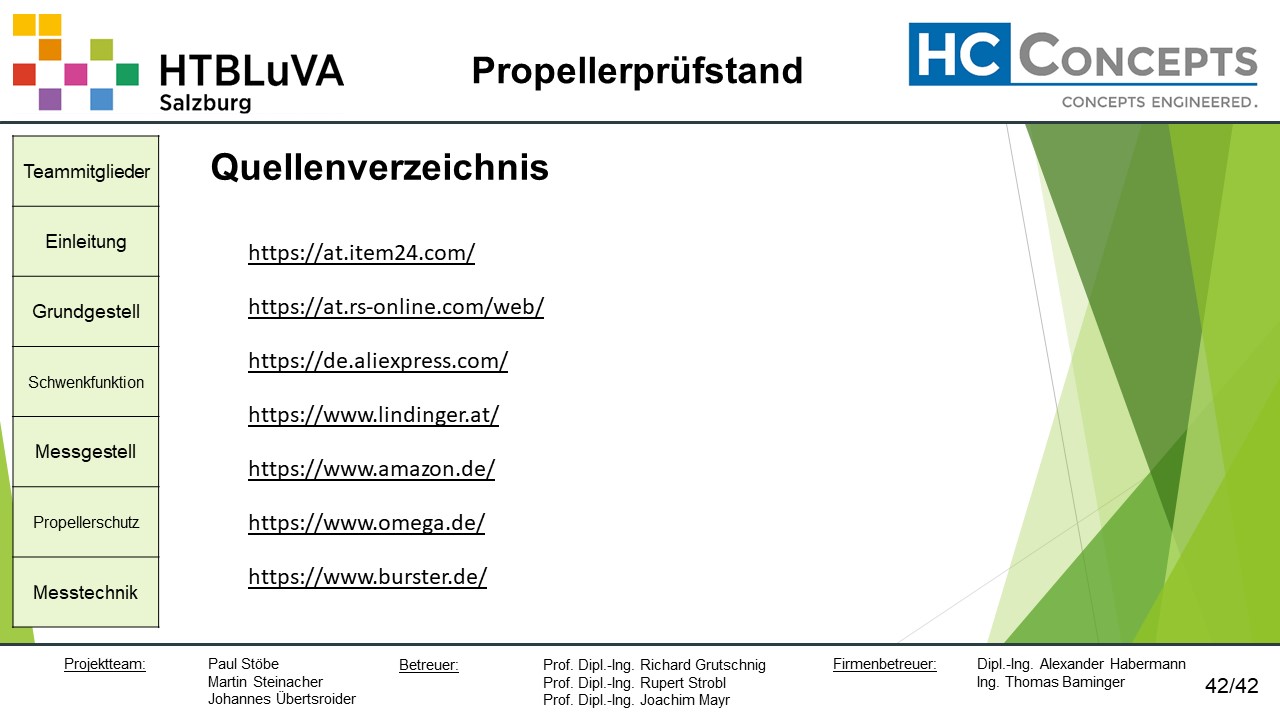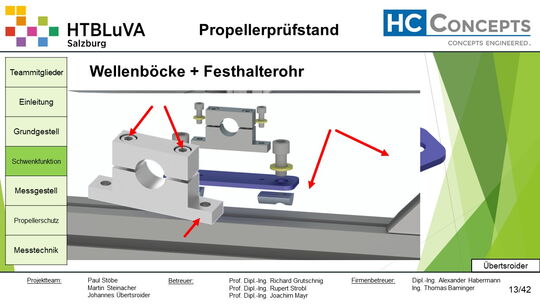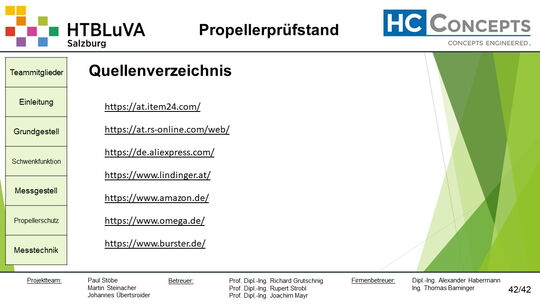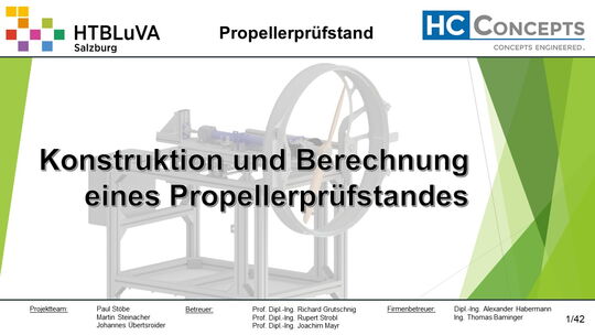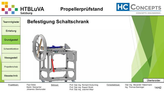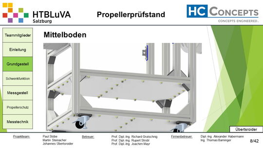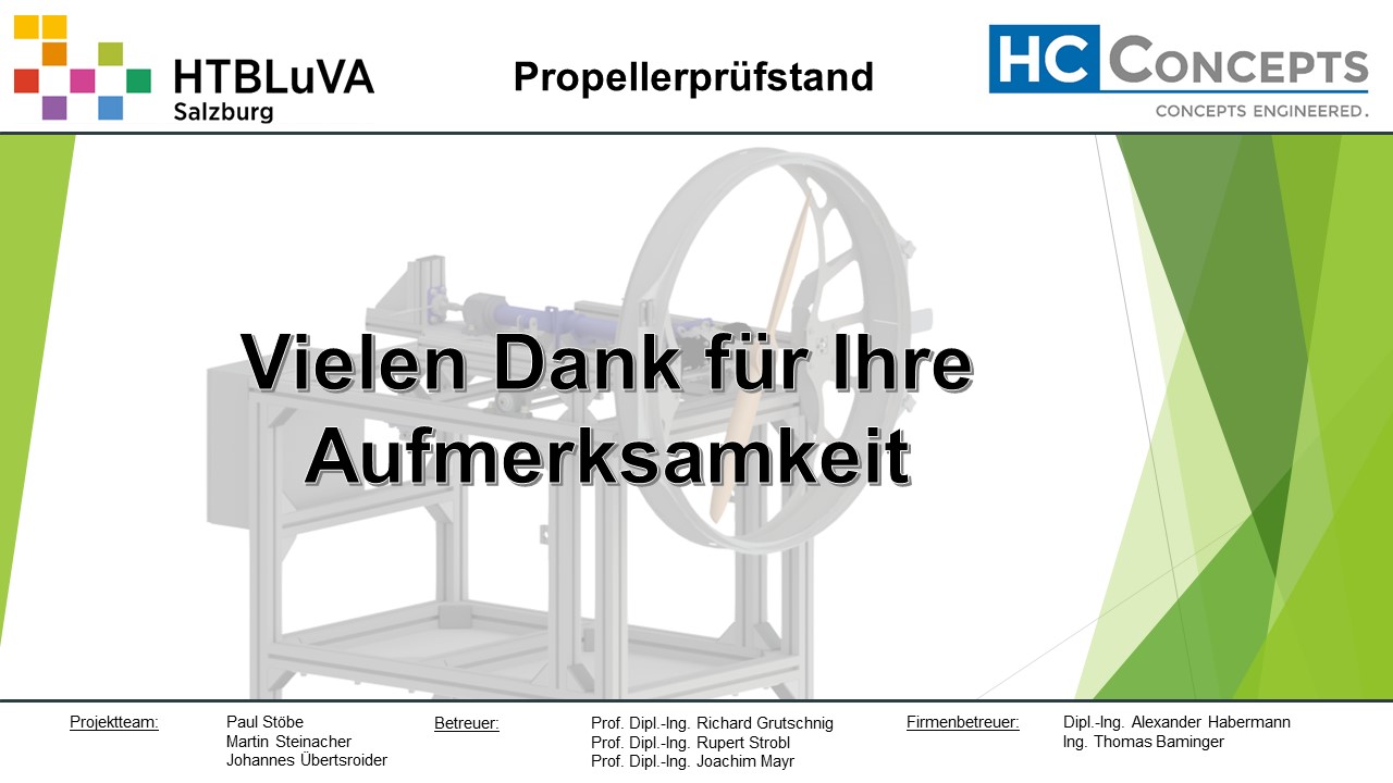 Das Ergebnis dieses Projektes sind die erfolgreiche Entwicklung, Konstruktion und Fertigung des Propellerprüfstandes.