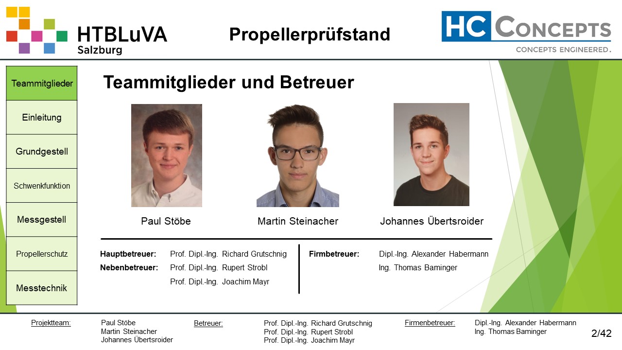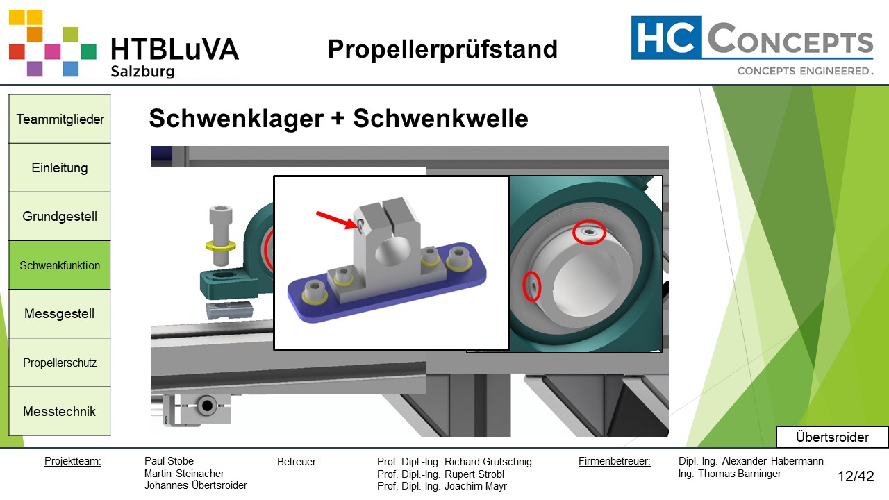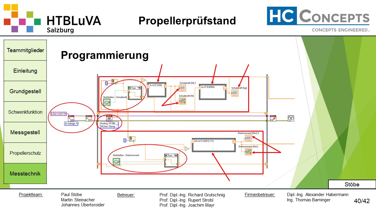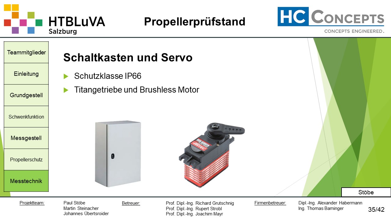 Die Firma HC-Concepts entwickelt unter anderem einen Verbrennungsmotor für Drohnen und für größere Modellflugzeuge. Hierfür wird ein Prüfstand benötigt, auf dem der Motor mit dem zugehörigen Propeller montiert und getestet werden kann. Der Prüfstand soll in der Lage sein, alle wichtigen Motordaten zu loggen und dabei die Schubkraft und das auftretende Kippmoment zu messen.