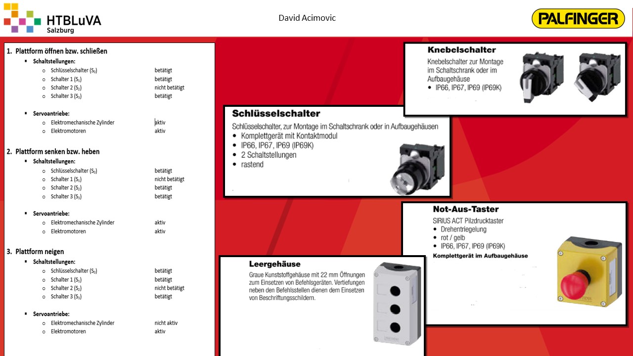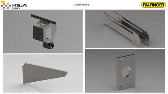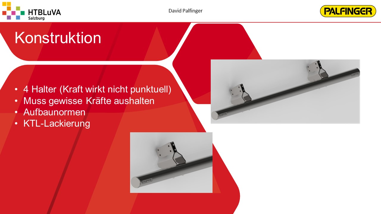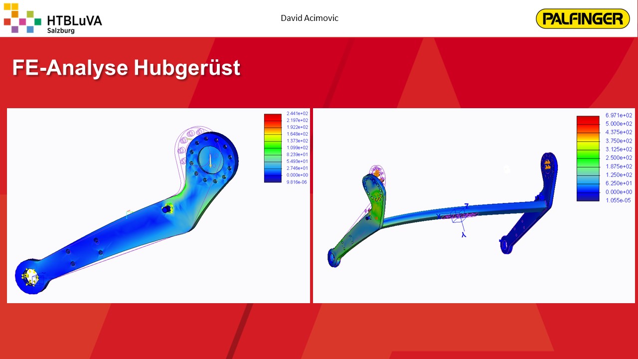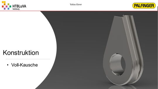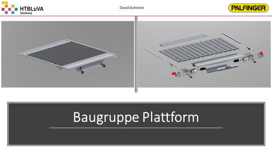 Nach einer sehr intensiven Konzeptphase wurde mithilfe der Firmenbetreuer aus mehreren Konzepten die beste Lösung erarbeitet. Es handelt sich hierbei um eine Kombination aus Seilzugsystem und Drehantrieb, welche die Bewegung der Ladebordwand bewerkstelligen soll. Anschließend wurde das Projekt in drei Hauptbereiche unterteilt. Jedes Teammitglied übernahm die Verantwortung für eines dieser Bereiche. Für die Realisierung der Gesamtkonstruktion und die Finite-Elemente-Analyse wurde ,,Creo Parametric 4.0‘‘ verwendet. Für Berechnungen und die Darstellung von Diagrammen war ,,PTC Mathcad Prime‘‘ sehr hilfreich.