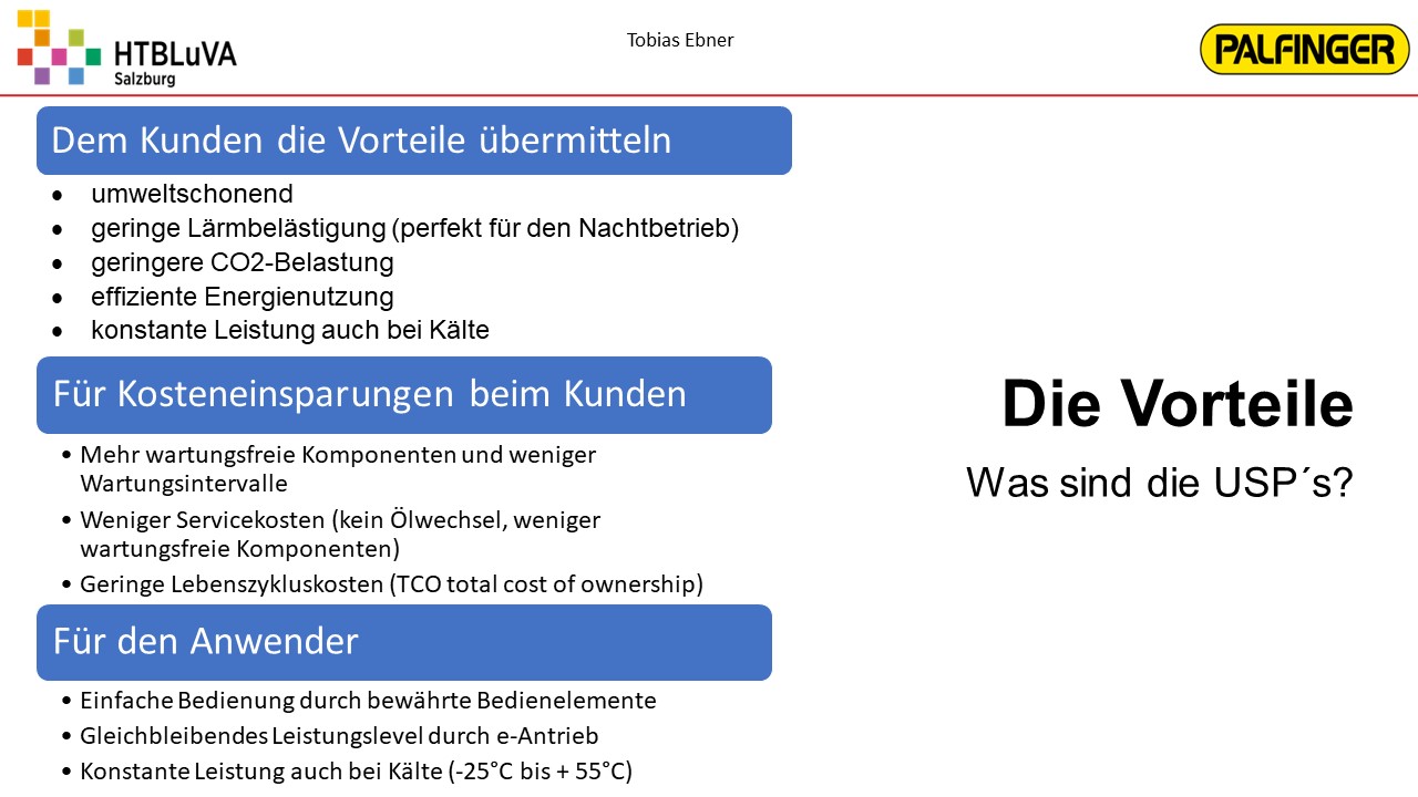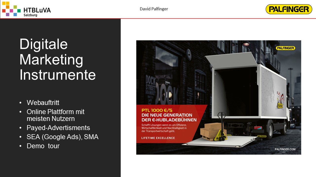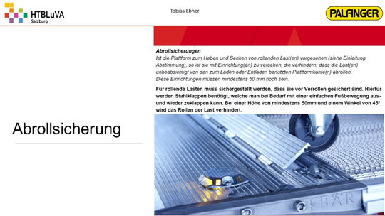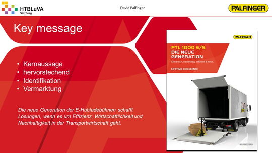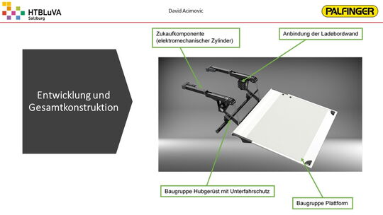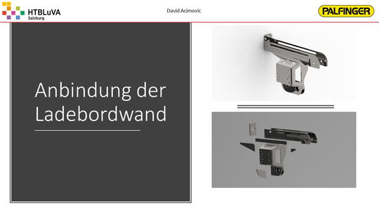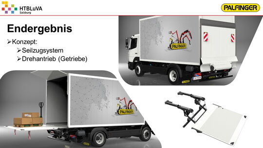 Das Ergebnis ist eine vollfunktionsfähige und vollelektrische Ladebordwand mit einem sehr ansprechenden Design, die eine maximale Traglast von 1000 kg aufweist. Über die Weiterentwicklung der elektrischen Ladebordwand wird basierend auf unserer Diplomarbeit firmenintern entschieden werden. Weiters wurde ein Marketingkonzept erarbeitet zur Untersuchung des Vertriebspotentials und zur Bereitstellung von Material für die Verkaufsförderung.