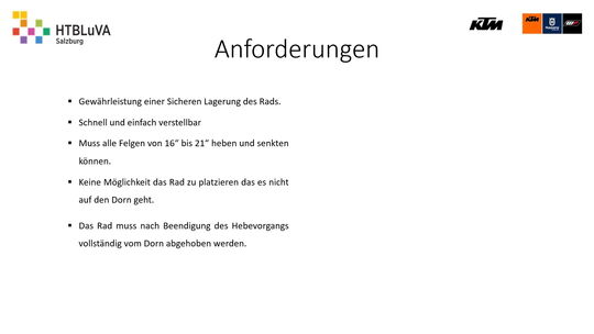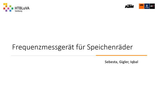 Das Ziel des Diplomarbeitsprojektes „Frequenzmessgerät für Speichenräder“ war die Überarbeitung einer, bereits im letzten Schuljahr begonnenen, aber nicht vollendeten Diplomarbeit. Das Konzept der Arbeit war die Entwicklung eines Prüfstandes, welcher durch die ausgegebene Frequenz der angeschlagenen Speiche erkennen kann, ob die fragliche Speiche stark genug angezogen wurde.