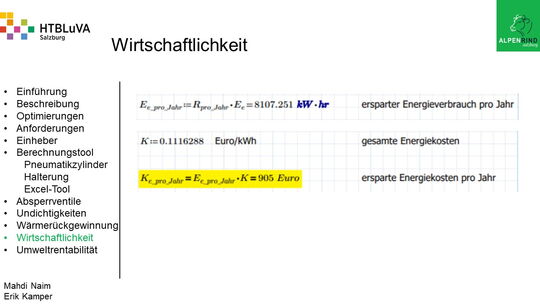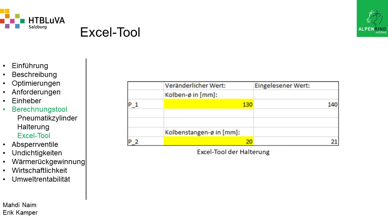 Das Ergebnis dieses Projektes soll ein rentabler und umweltfreundlicher Betrieb verschiedener Pneumatikanlagen sein, welcher durch unser Berechnungstool weitergeführt werden kann.
