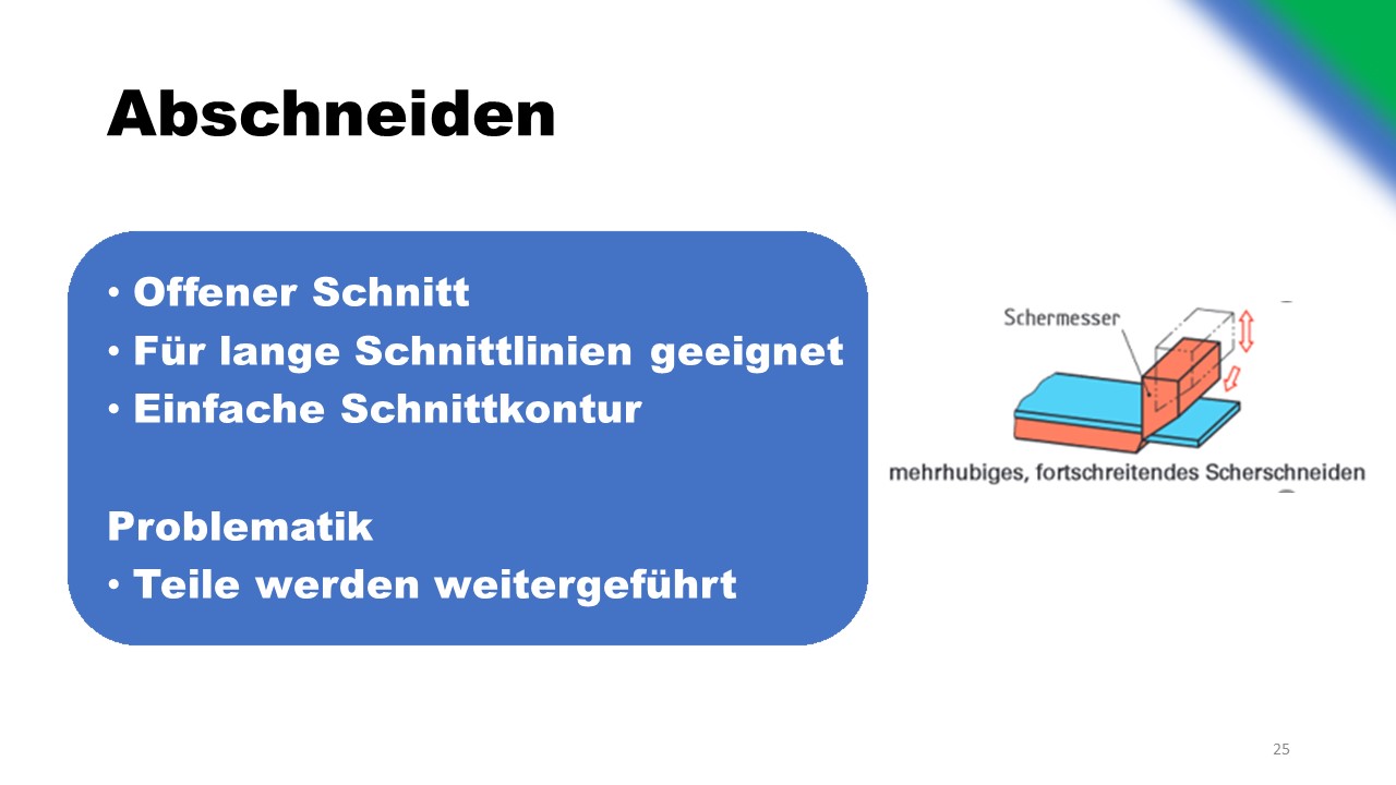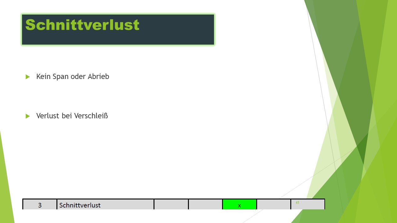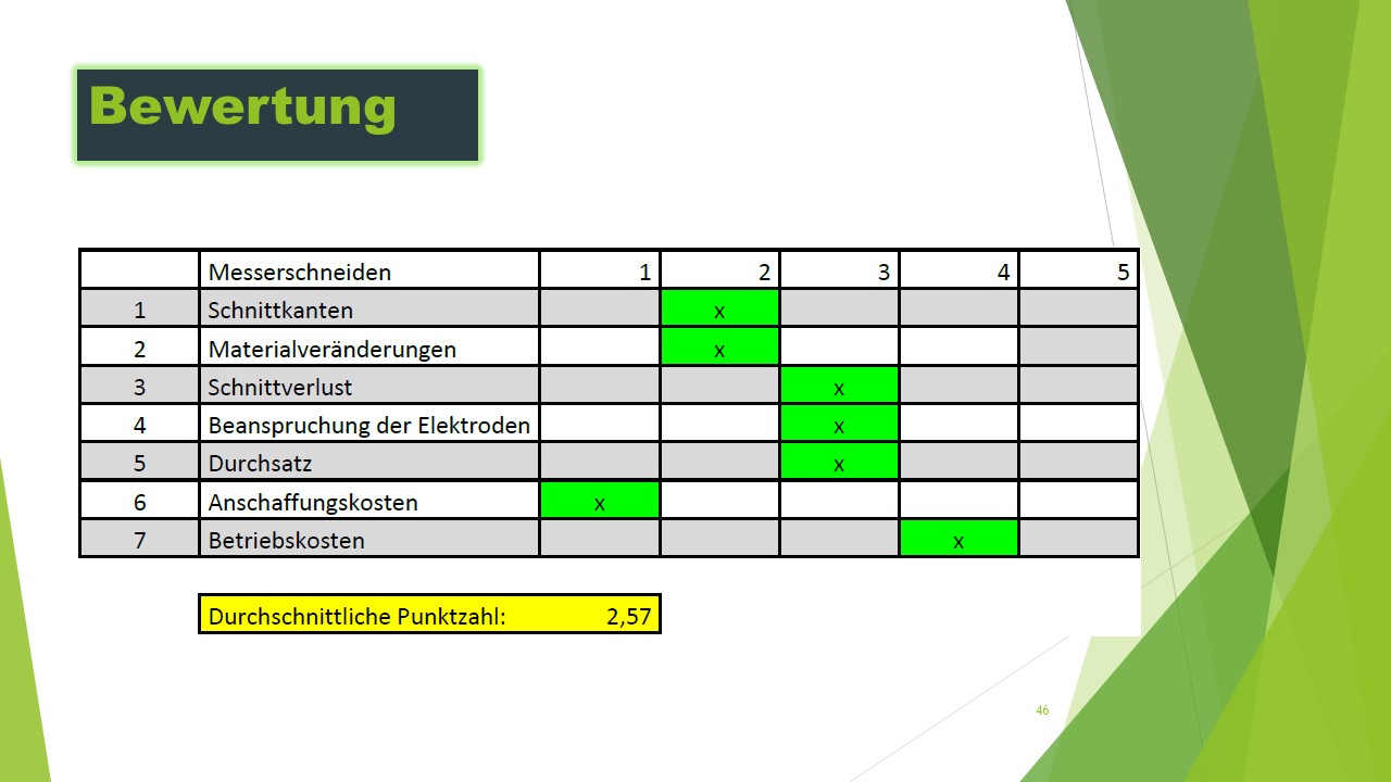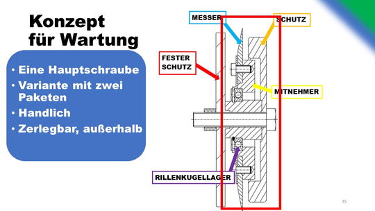 Drei alternative Schneidekonzepte wurden ausgearbeitet und verglichen. Optimierungen bezüglich des Verschleißes und der Wartung wurden konzeptioniert. Gegenüberstellung