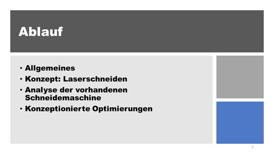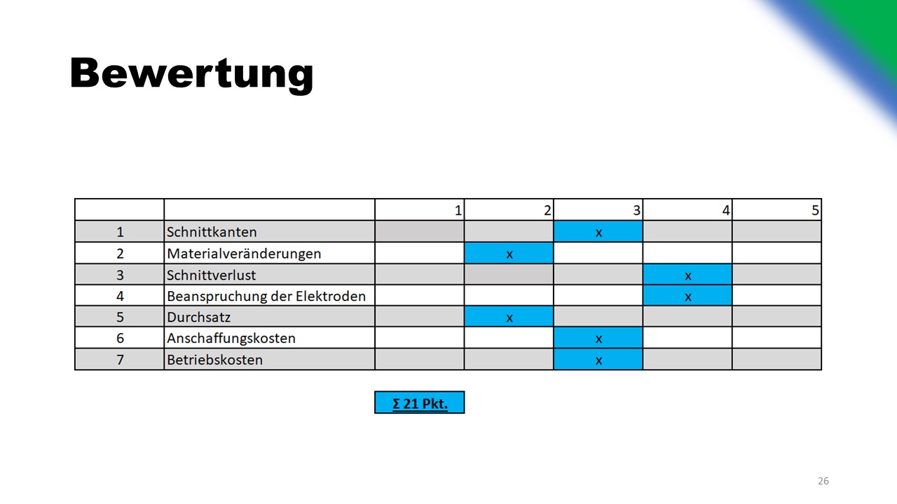 Ausarbeitung mehrerer unterschiedlicher Konzepte, für den alternativen Schneidprozess der Elektroden. Analyse des bereits bestehenden Querschneiders. Betriebswirtschaftliche Analyse und Optimierung der Wartung und des Verschleißes.