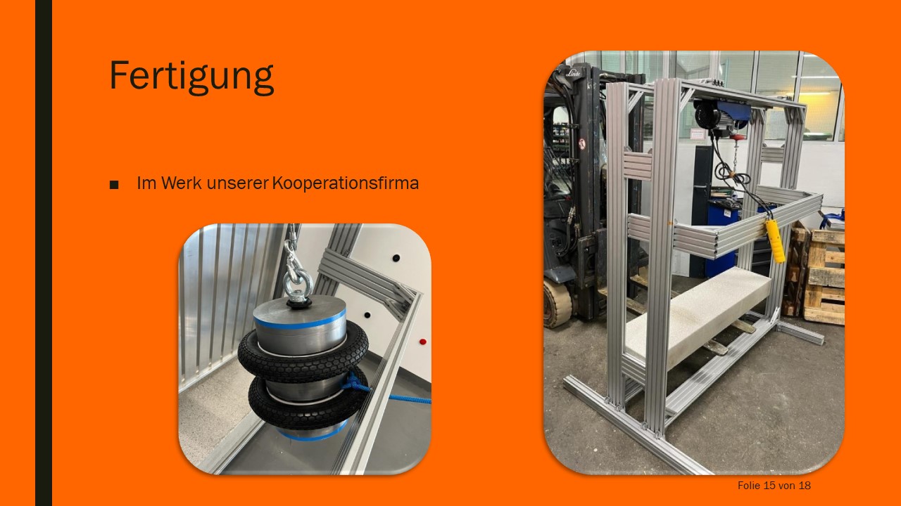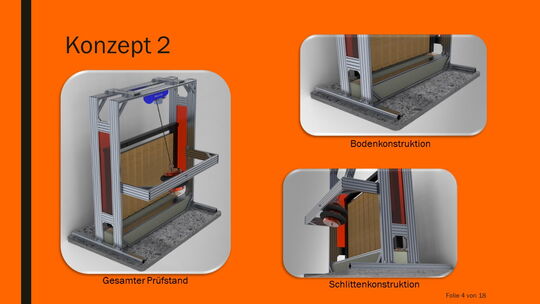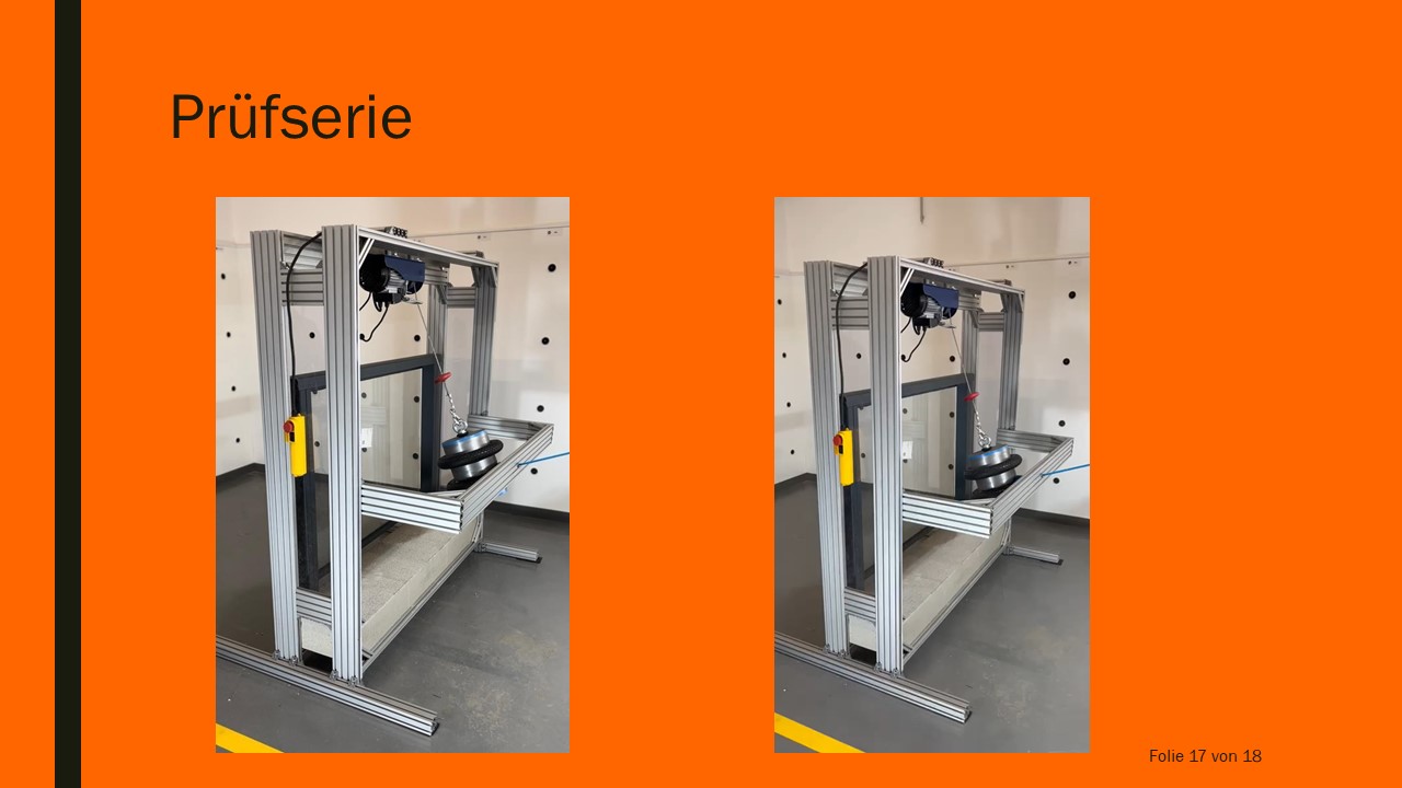 Die Entwicklung des Pendelschlagprüfstandes ist erfolgreich abgeschlossen. Alle erforderlichen Daten wurden der Firma Brenter Balkone übergeben.