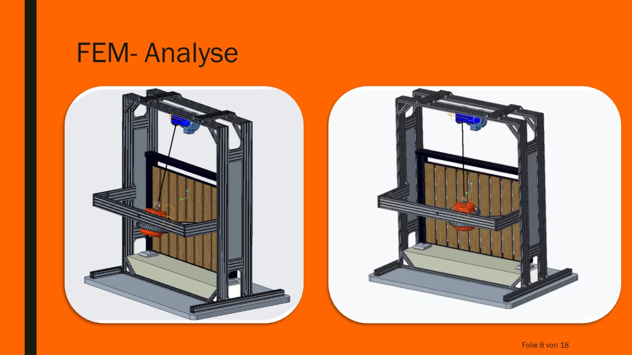 Für eine erfolgreiche Marktzukunft des Auftragsgeber soll ein Pendelschlagprüfstand entwickelt werden. Mit diesem Prüfstand sollen alle Absturzsicherungs-Modelle des Auftragsgebers geprüft werden, um somit eine Grundlage für das Finite- Elemente-Tool schaffen zu können.