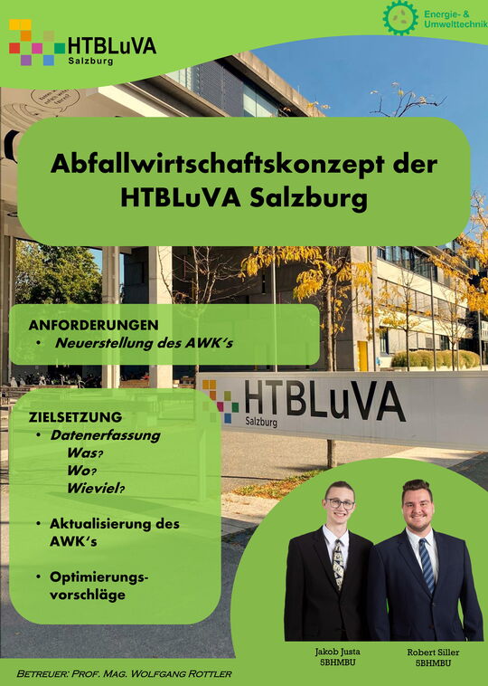 Ziel dieser Diplomarbeit ist es, das an der HTBLuVA Salzburg vorhandene Abfallwirtschaftskonzept aus dem Schuljahr 2011/12 gemäß des Abfallwirtschaftsgesetzes 2002 (AWG 2002) i.d.g.F. zu überarbeiten und zu aktualisieren.