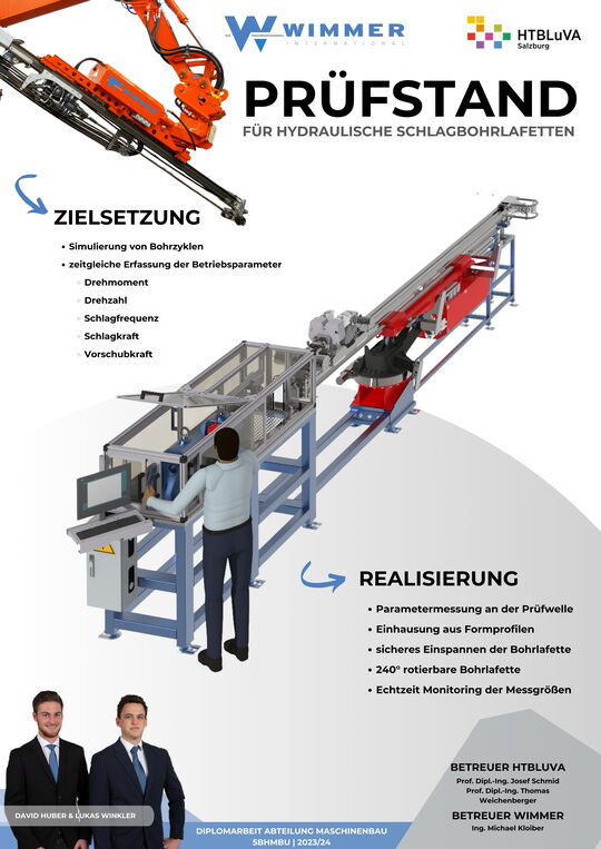 In der Firma Wimmer Felstechnik GmbH werden derzeit Bohrlafetten gefertigt, die vor der Auslieferung ausschließlich manuell auf Funktion geprüft werden. Um den Kunden die volle Funktionstüchtigkeit garantieren zu können, soll eine automatisierte Vorrichtung entwickelt werden, welche mithilfe einer digitalen Auswertung die Qualität der Bohrlafette belegt.