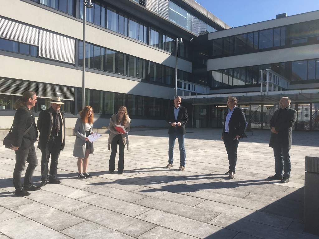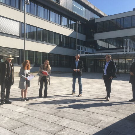Bild 3: Arch. Dipl.-Ing. Carsten Innerhofer, Arch. Dipl.-Ing. Franz Seidl, Emily Schönegger, Amelie Nußbaumer, Arch. Dipl.-Ing. Bernhard Kurzweil, Direktor Dipl.-Ing. Dr. Franz Landertshamer, Abteilungsvorstand Bmstr. Ing. Dipl.-Ing.(FH) Herbert Buchner