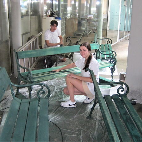 Bild 3: Schleifen und Streichen von Gartenbänken