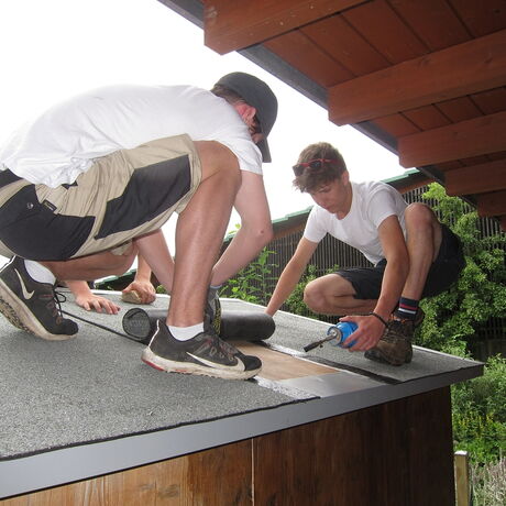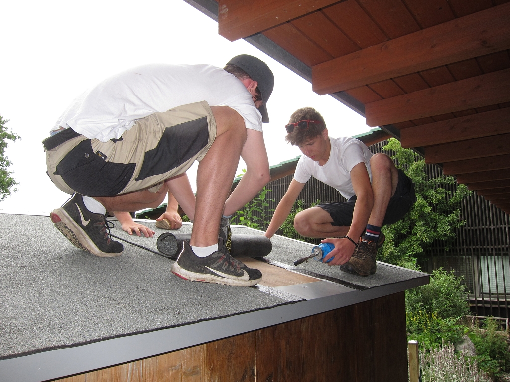 Bild 14: Dachdeckerarbeiten beim Hühnerstall durch Martin Baier und Michael Klausner