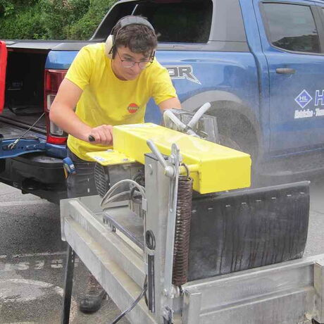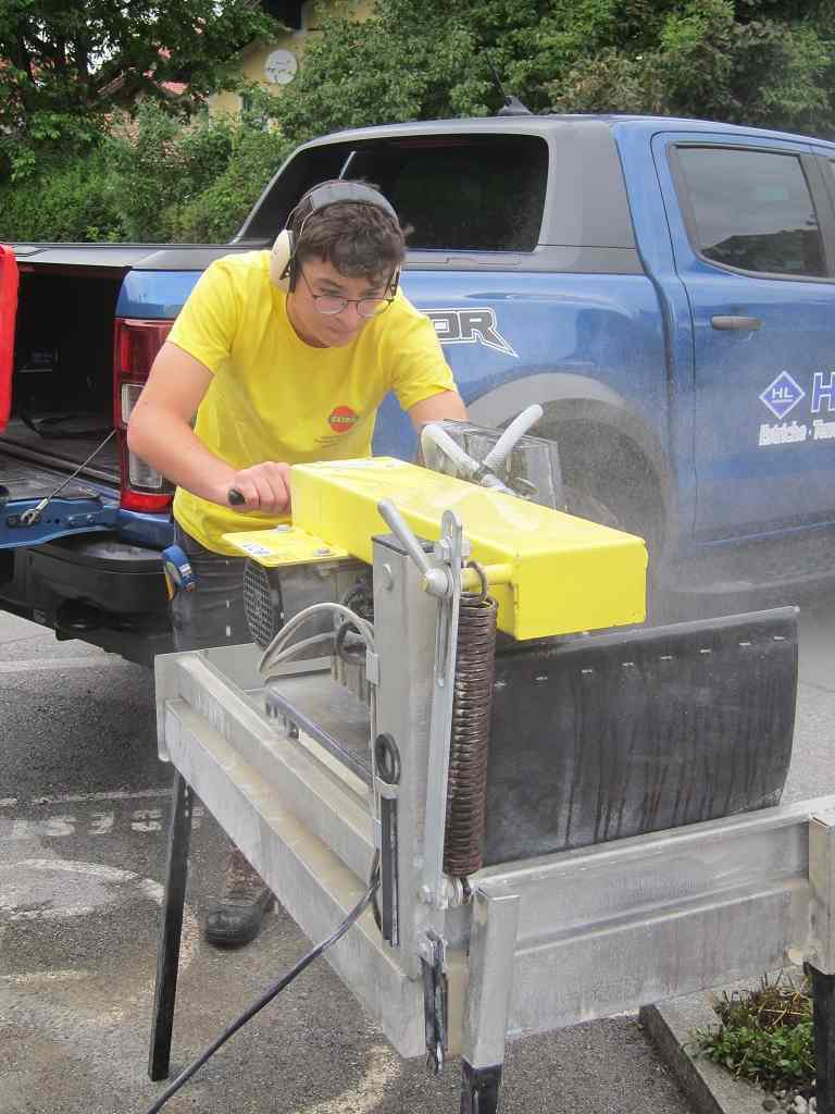 Bild 11: Arbeiten mit der Steinsäge Jonas Wuggenig