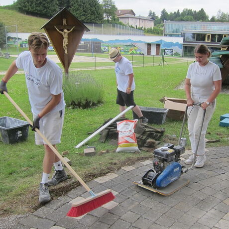 Bild 12: Pflasterarbeiten vorne Lukas Eisl, dahinter Lukas Eisl und Markus Seidl