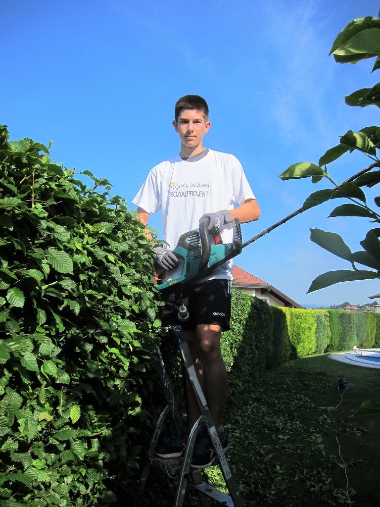 Gemeinsam mit ihrem Jahrgangsvorstand, Herrn Mag. Markus Kainzner, und ihrem Bauhoflehrer, Herrn Ing. Otto Oberlechner, waren die Schülerinnen und Schüler der 1BHBTT im SOS Kinderdorf in Seekirchen im Arbeitseinsatz.
