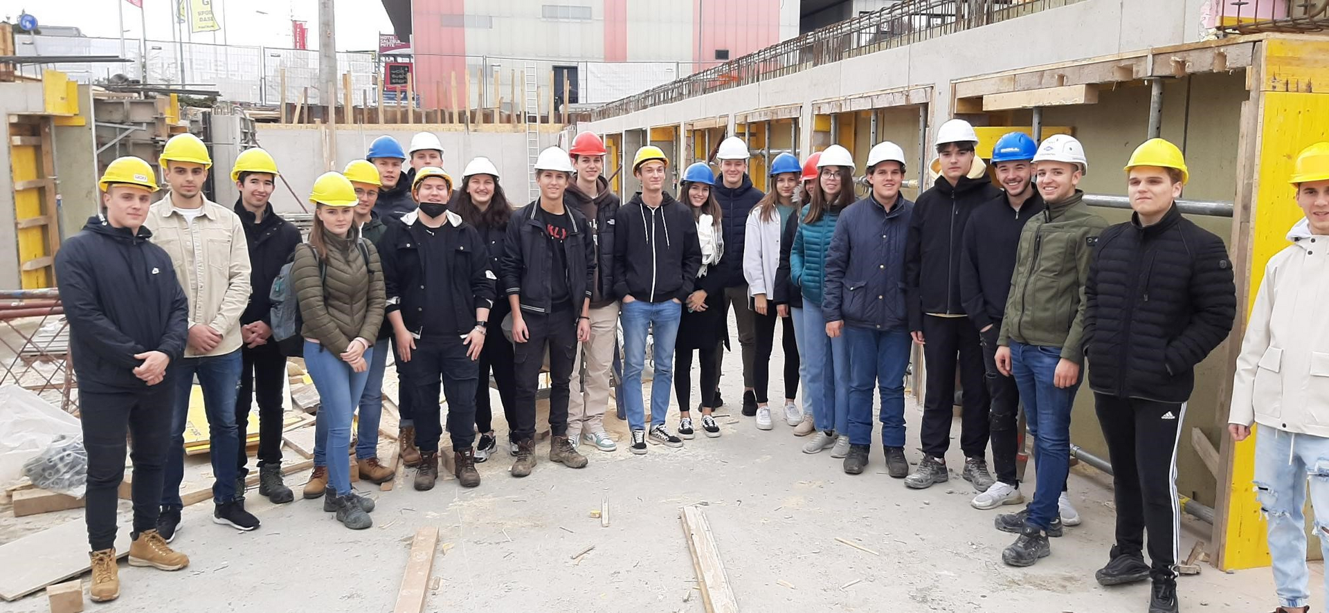 Bei dem Baustellenbesuch konnten die SchülerInnen hautnah interessante praktische Einblicke in das Geschehen einer Großbaustelle gewinnen. Baustellenbegehungen stellen hierbei einen wichtigen Bestandteil der Ausbildung zum Bautechniker dar, um theoretisch im Unterricht erlernten Stoff zusätzlich mit eigenen Augen erleben zu können.