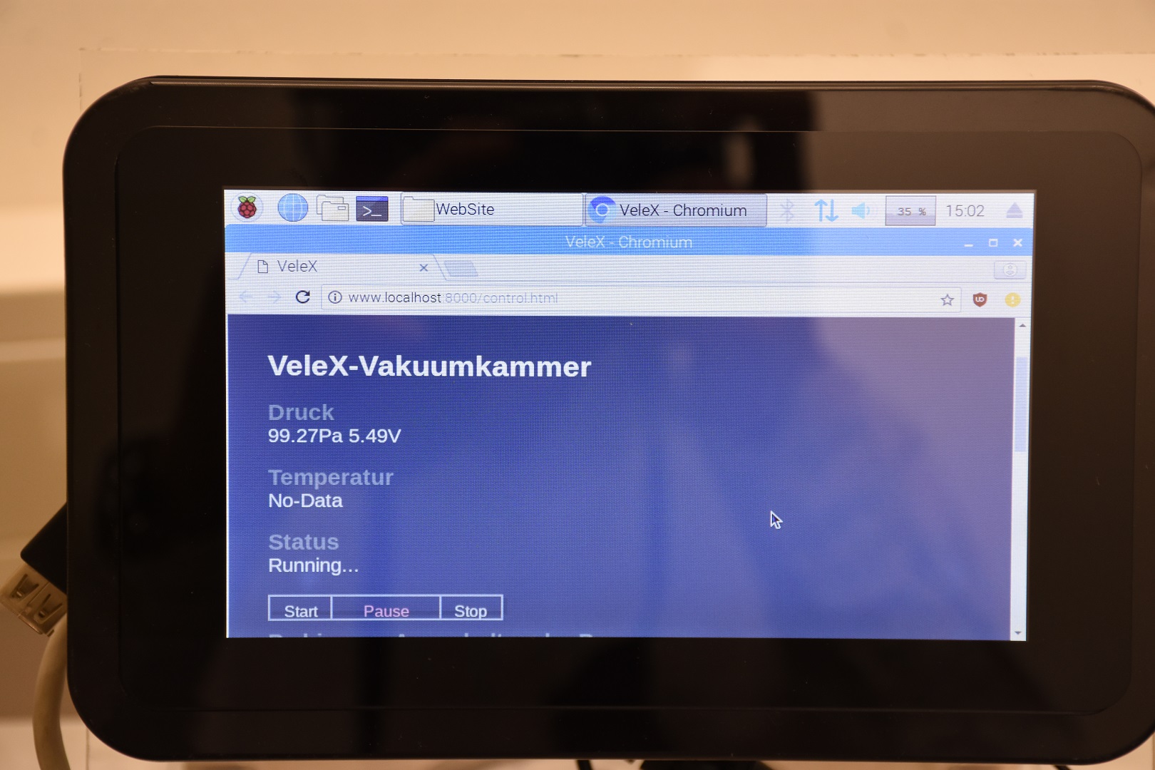 Auf den Bildern sieht man die Platinen im Temperaturprüfschrank, die Vakuumkammer und die Verläufe der Temperatur und des Vakuums. Gut zu sehen ist auch, dass man bei einer Platine durch Fräsungen versucht hat, möglichst viel Gewicht zu sparen.