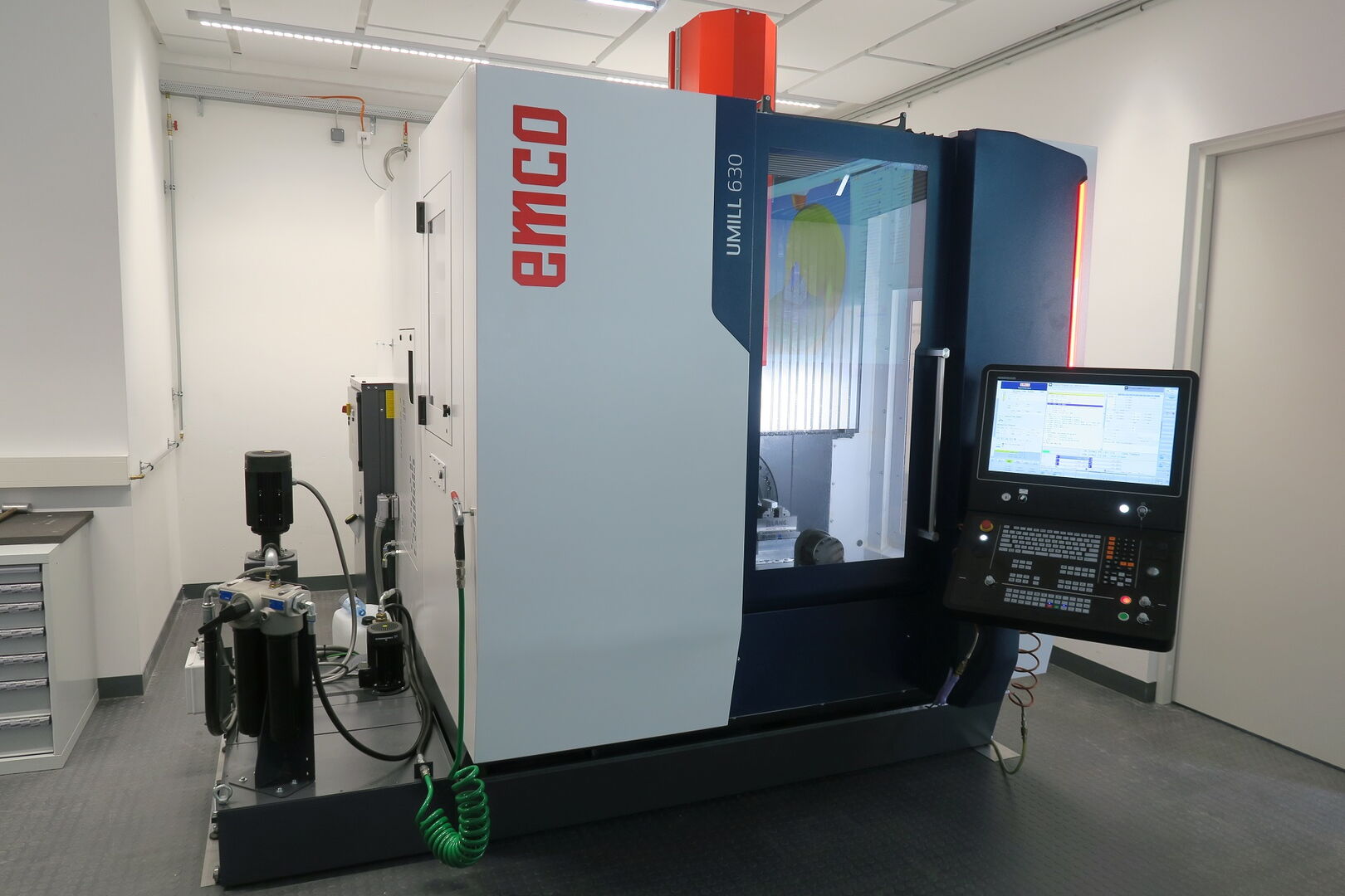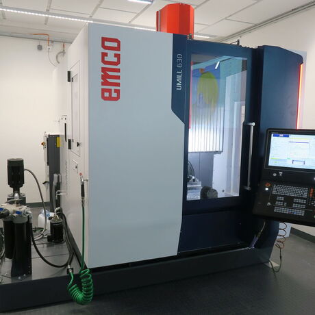 Das Bearbeitungszentrum UMILL630 von EMCO ist für die klassische Bearbeitung auf 3 Achsen bis hin zu 5-Achs Simultanbearbeitung von Werkstücken geeignet und zählt zu den modernsten CNC-gesteuerten Werkzeugmaschinen, die derzeit in österreichischen Schulen für die Ausbildung zur Verfügung stehen. Gesteuert wird die Maschine mit Heidenhain TNC 640, die Bedienung über den großen 27‘‘ touch Monitor in Kombination mit einer analogen Tastatur lässt für den Benutzer keine Wünsche offen.