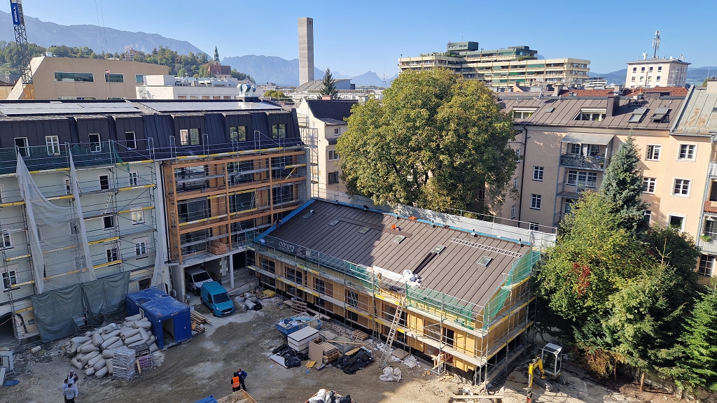 Mit großem Interesse sehen wir der Fertigstellung des Hotels mit 160 Hotelzimmern und 43 Luxuswohnungen entgegen. Die Architektur, geplant von den Büros Dietrich Untertrifaller Architekten und LP Architektur, lässt eine interessante Gestaltung im Stadtbild von Salzburg erwarten.