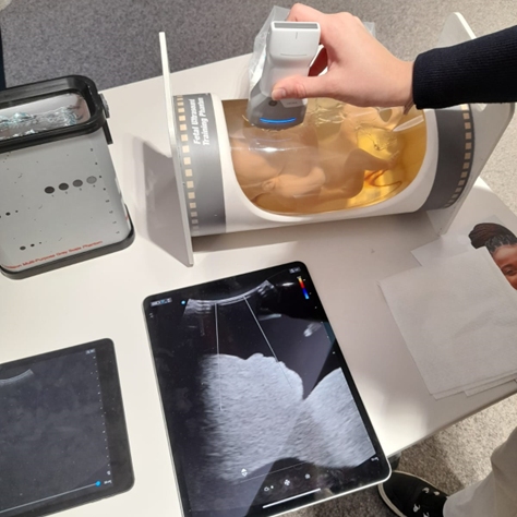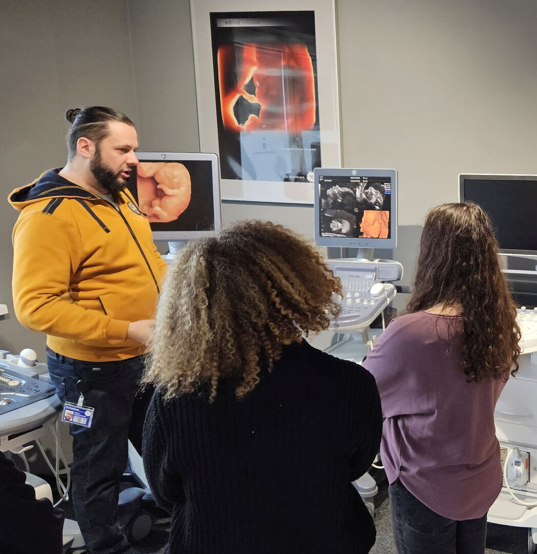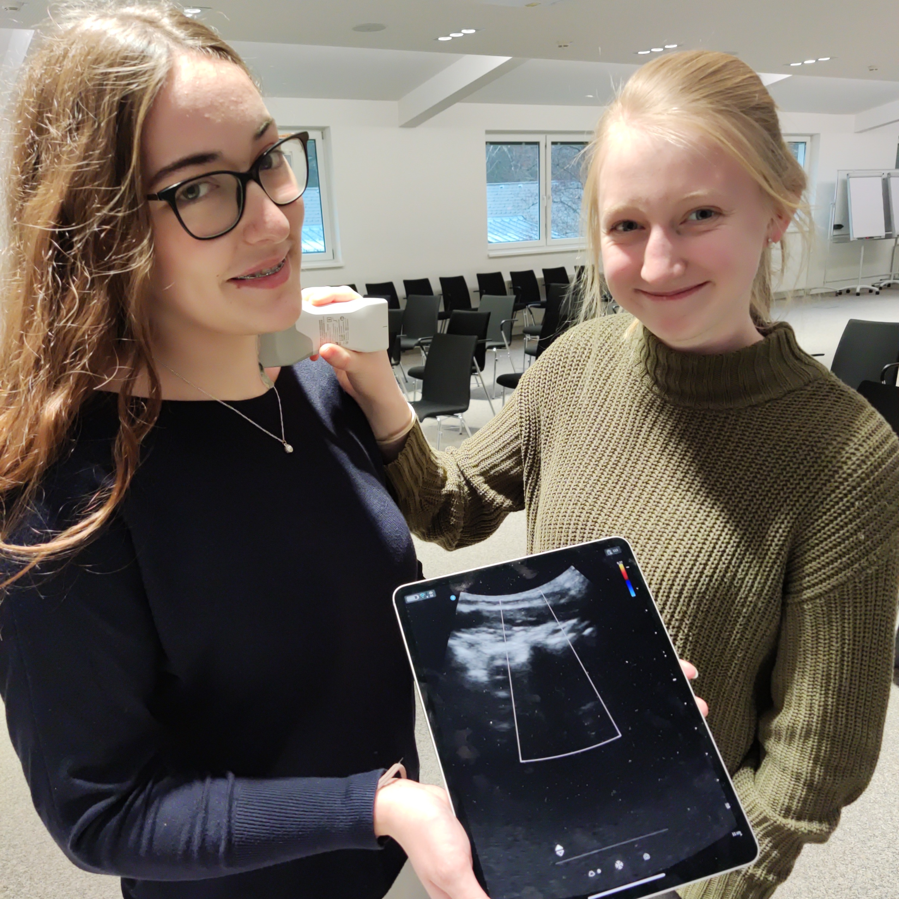 Danach wurde die Klasse in zwei Gruppen eingeteilt. Die eine Gruppe wurde zuerst auf dem Firmengelände herumgeführt, während die andere Gruppe eine kurze Führung durch ein kleines Museum, welches sich im Gebäude befindet, bekam. In diesem Museum sind die Entwicklungen der Ultraschallgeräte über die letzten Jahrzehnte ausgestellt.