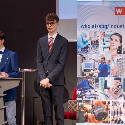 Zwei unserer Schüler:innen konnten außerdem aktiv an der Gestaltung der Festaktes teilnehmen: Elias Kuel (5BHBTT) und Johannes Metz (4CHBTH) bedankten sich in ihrer Rede im Namen der 228 anwesenden Schüler:innen für die Wertschätzung, die ihnen die Sparte Industrie der Wirtschaftskammer Salzburg mit diesem Stipendium entgegenbringt.
