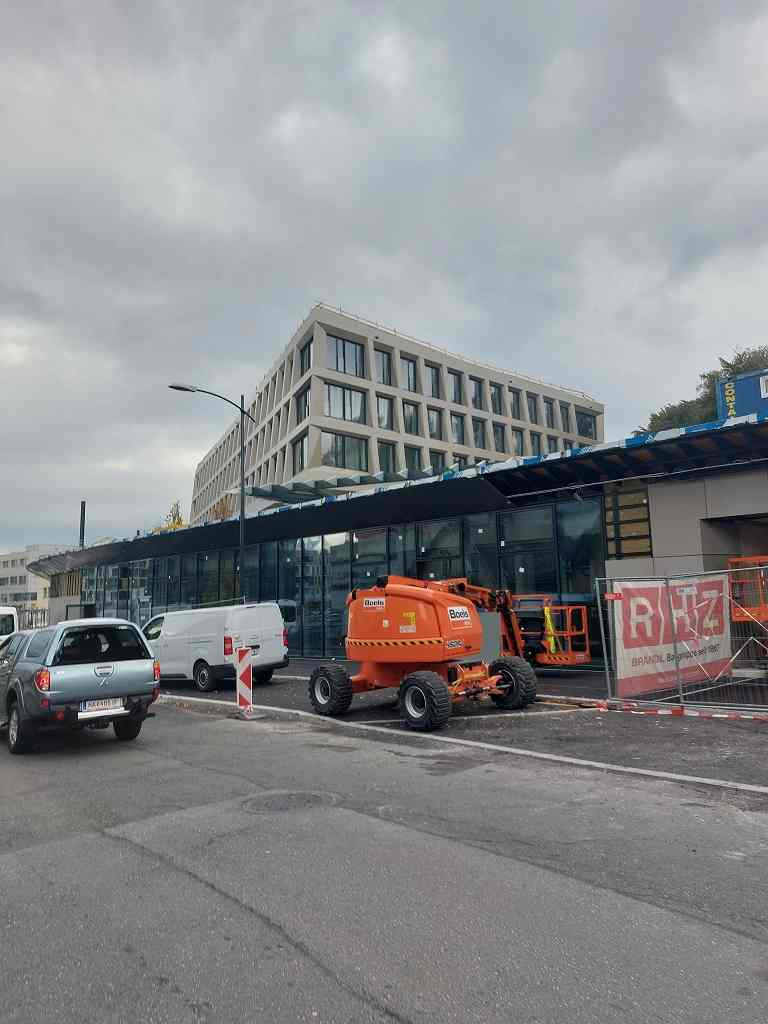 Kurz vor Baufertigstellung konnte die 3CHBTH das Gebäude des Nahversorgungszentrum im Stadtteil Itzling besichtigen und Hintergrundwissen zum Entstehungsprozess des Projektes erfahren. Die Geschäftsräumlichkeiten im Erdgeschoss und Teile der Büroflächen in den oberen Ebenen wurden ebenso wie die Tiefgaragengeschosse begangen.