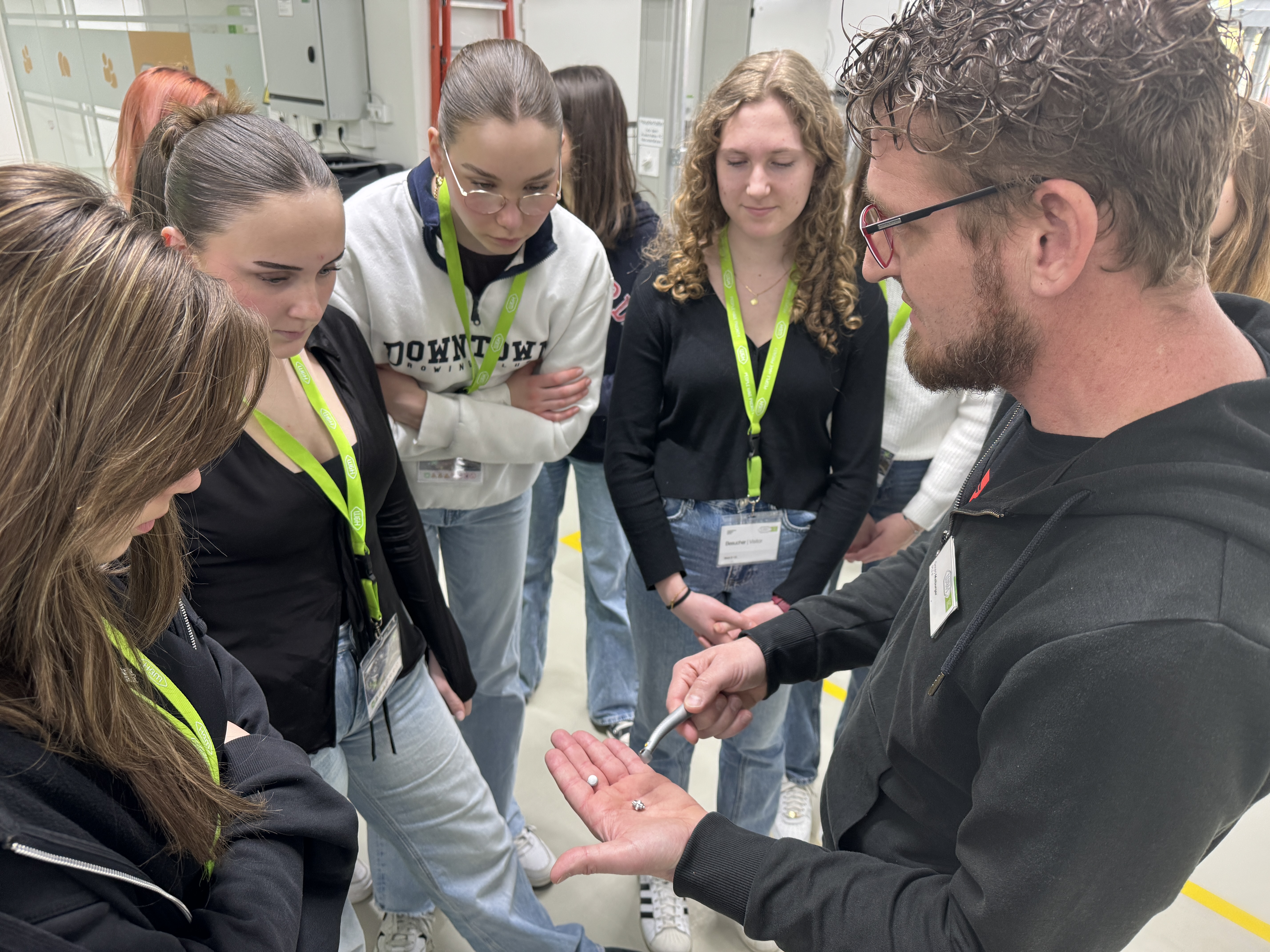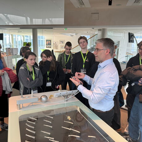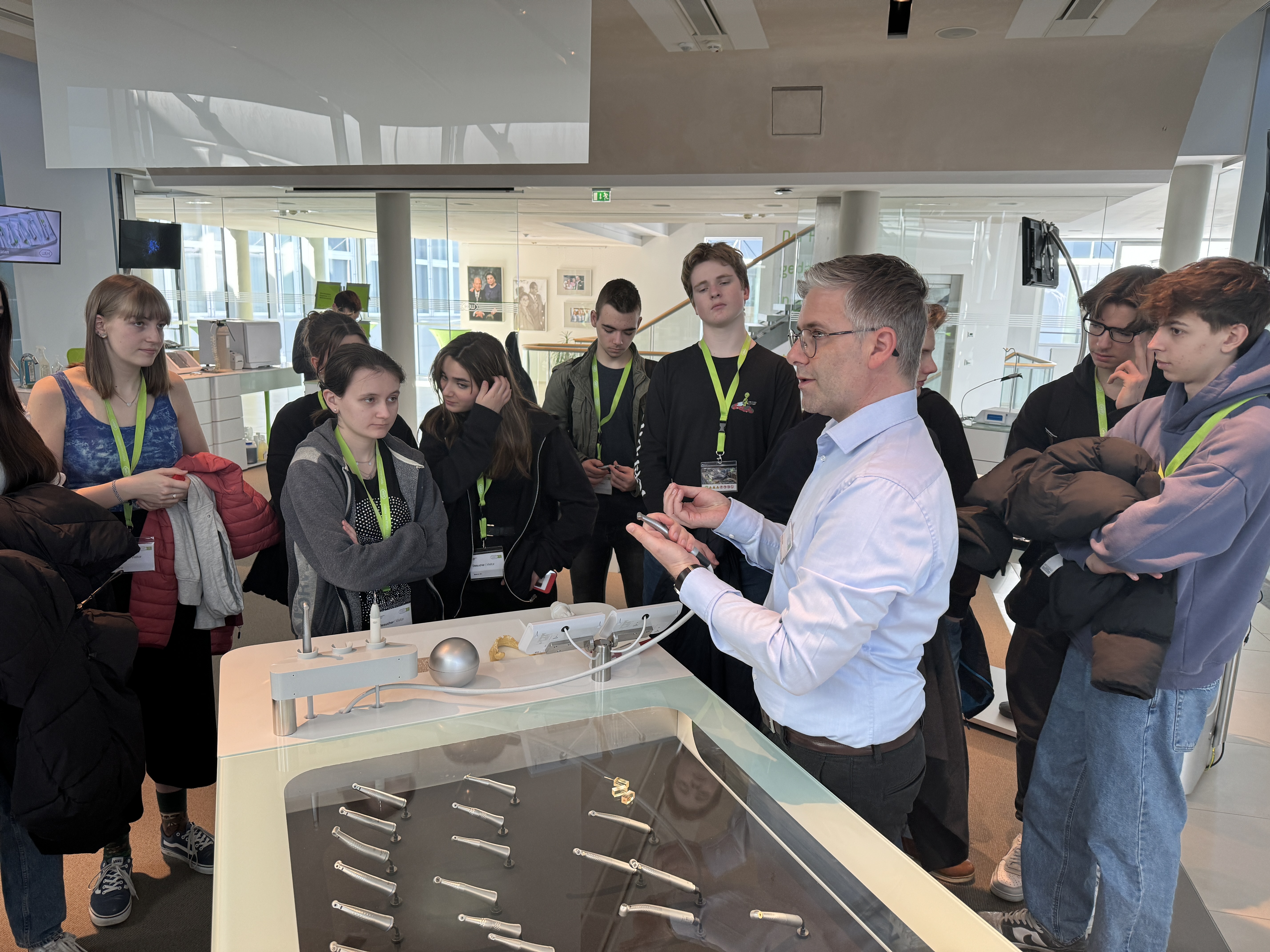 Nach ersten Informationen über das Unternehmen ging es für die Klasse in den Showroom, wo den Schüler/Innen die verschiedenen Produkte von W&H Dentalwerk vorgestellt und erklärt wurden. Es wurden nicht nur die fertigen Werkzeuge der Oralchirurgie gezeigt, sondern auch Querschnitte der Instrumente, sodass die Schüler/Innen mehr von der Technik hinter den Produkten sehen konnten.