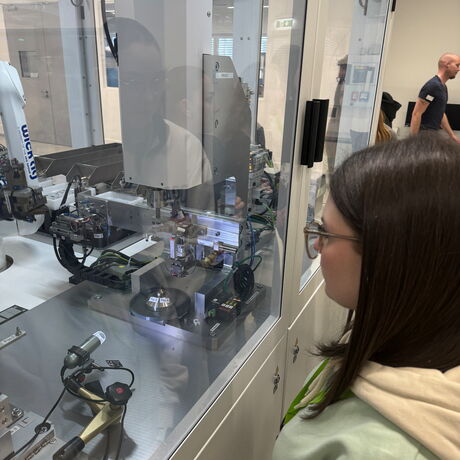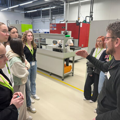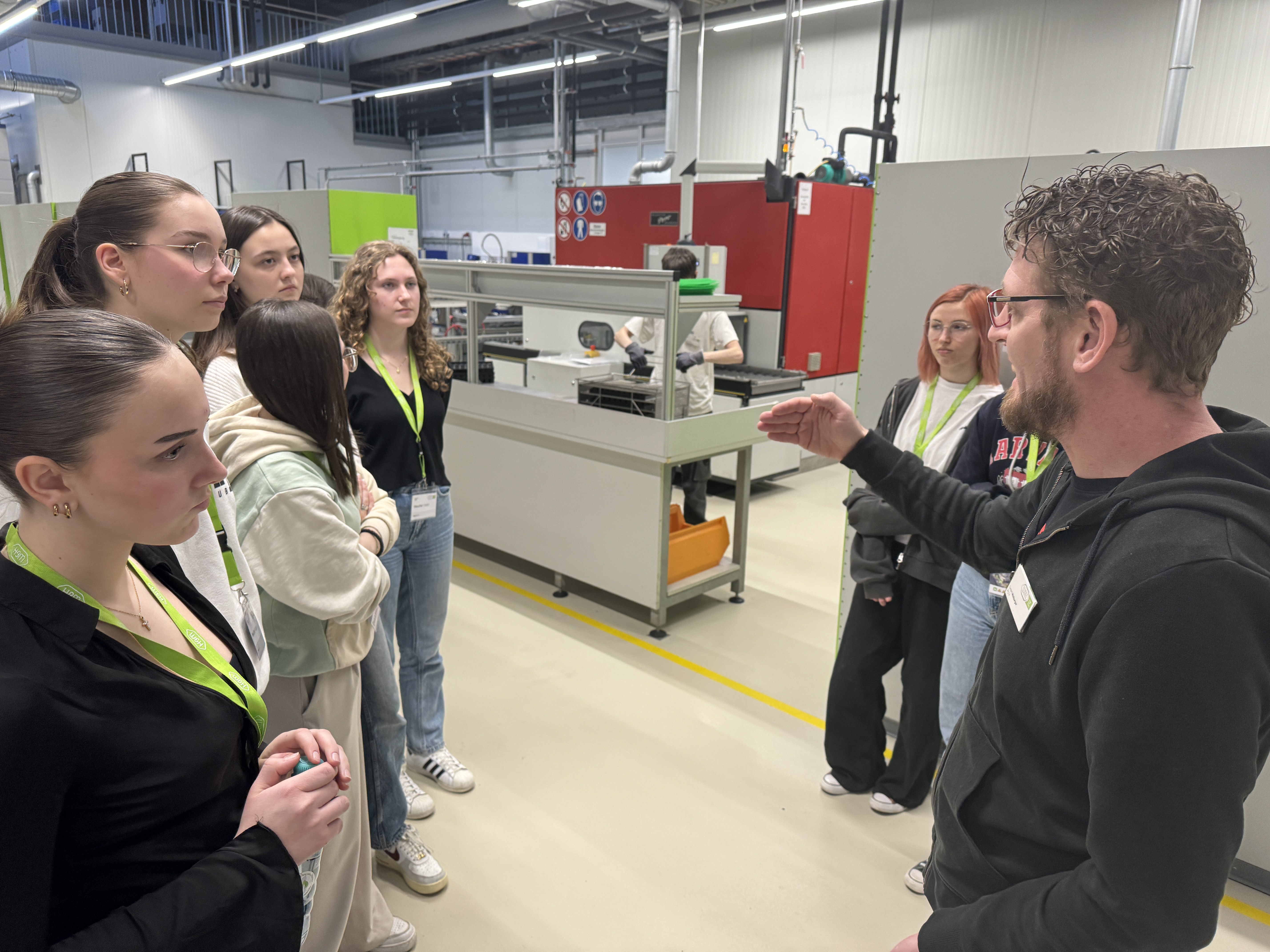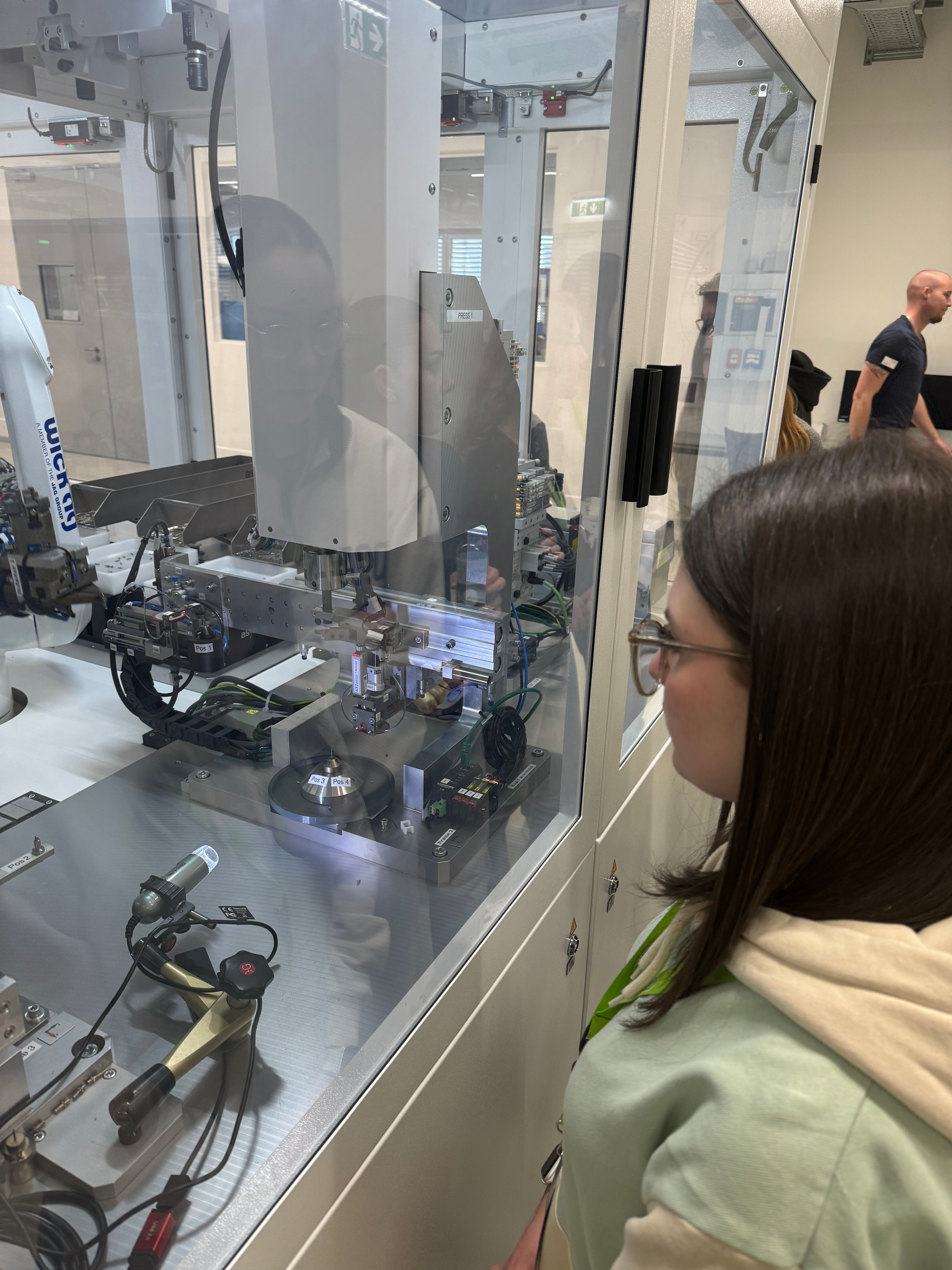 Anschließend wurde die Klasse in zwei Gruppen geteilt. Beide Gruppen bekamen eine Führung durch das Werk 2, bei welcher jede einzelne Fertigungsstation vorgestellt wurde. Dankenswerterweise beantworteten die Gruppenführer jede gestellte Frage ausführlich und somit konnten die Schüler/Innen nicht nur einen Einblick in den Prozess, also von der Planung bis hin zur Benützung der Produkte von den Kunden, erlangen, sondern auch von dem Arbeitsalltag in der Firma.